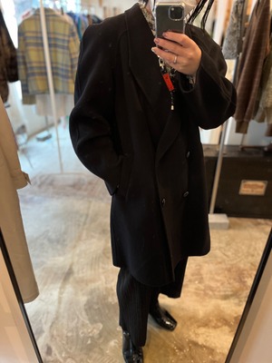 モダンなラペル(衿)の形に対してダブル釦、ラグランスリーブなのにあえて強調された肩!レトロさとモダンさが調和している素晴らしいバランスだと思います。
