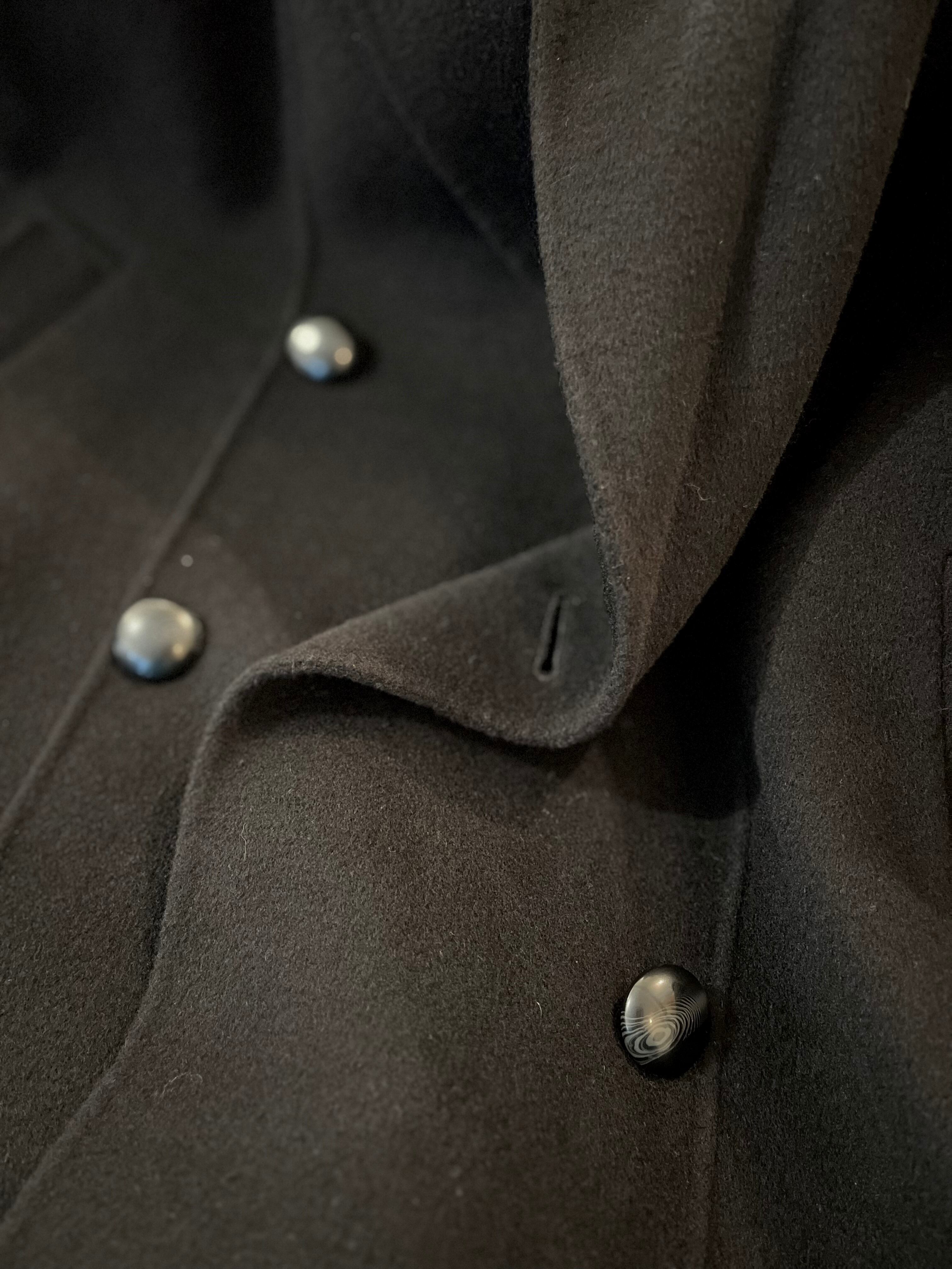 推定90'sのデザインハーフコート。素材の表記はございませんが、ウールであると思われます。カシミヤのような滑らかなタッチのメルトンで、仕立ても良くとても軽いのが魅力です。