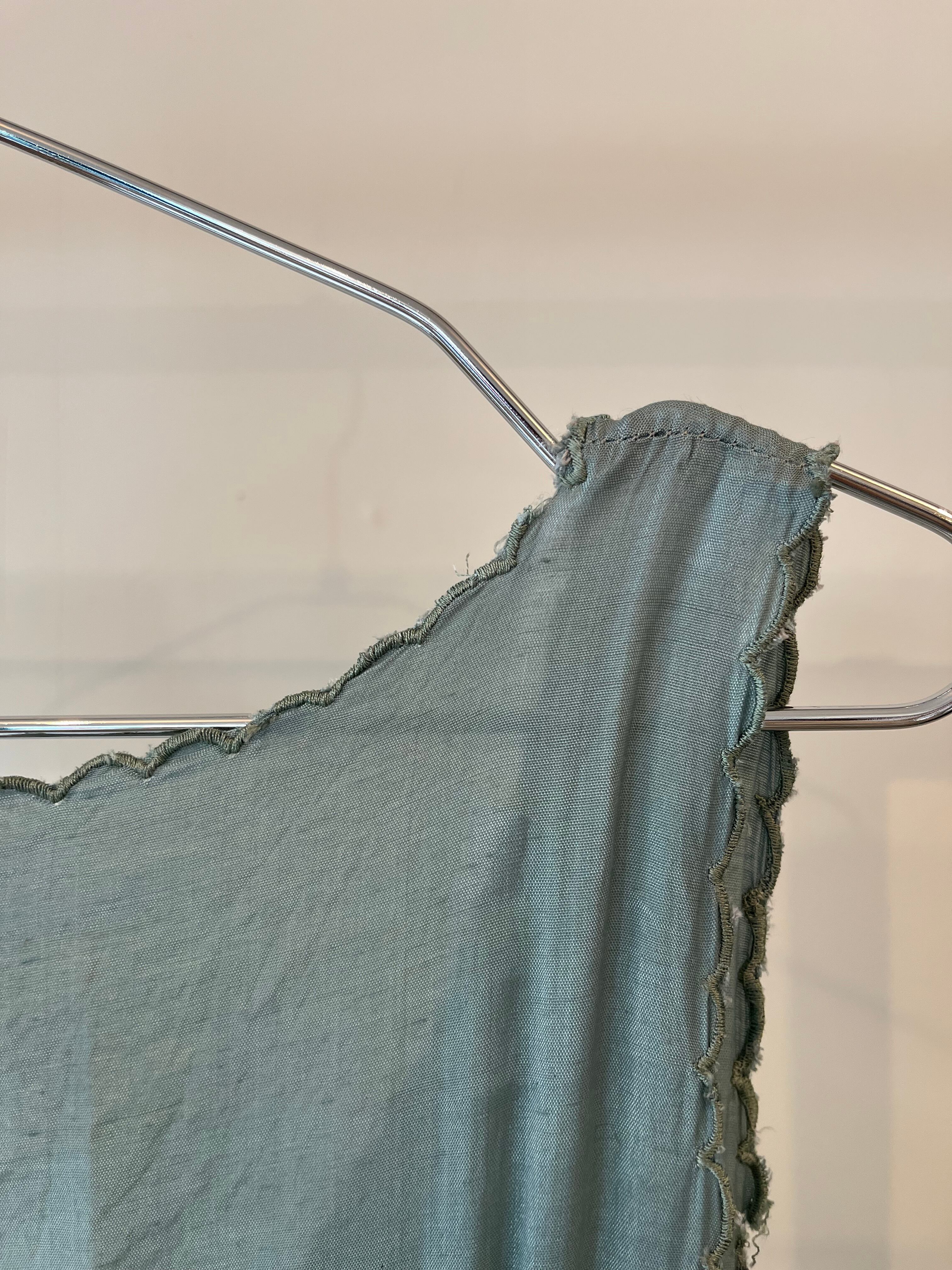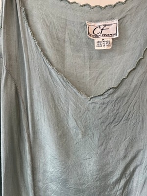 ・襟ぐり、袖ぐりなどのスカラップ刺繍部分にほつれ等のダメージがございます。写真ご確認下さい。