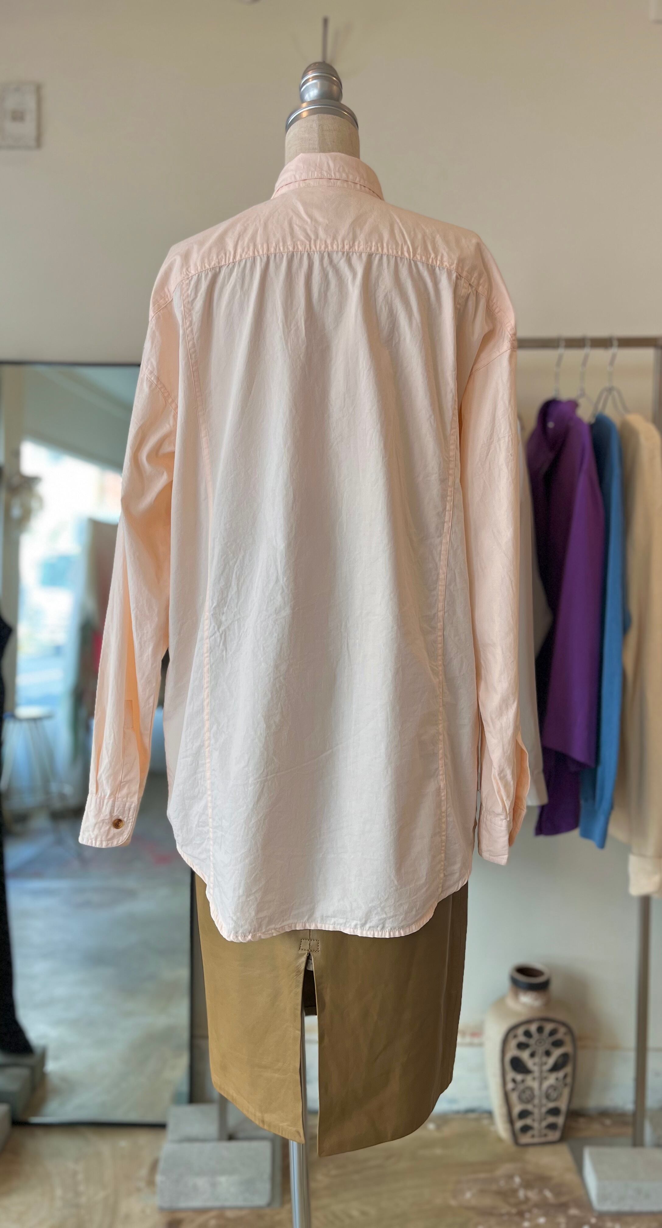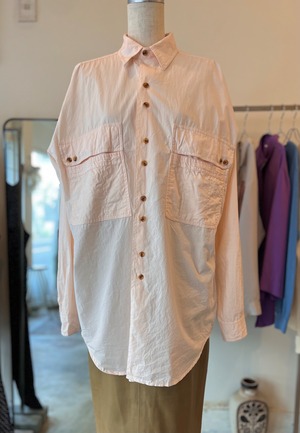 USメンズのMサイズですので、オーバーサイズです。シャツとしてだけでなく、薄手のジャケットのようにお使い頂けるのもポイントです。
