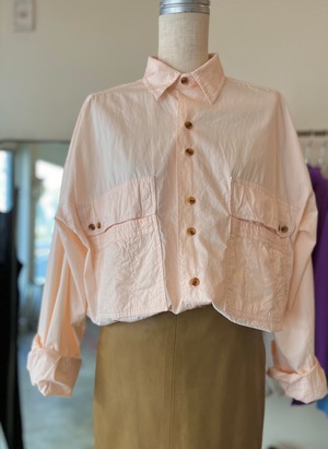 インパクトのあるディテールですが、ベビーピンクの優しい色味でバランスの良い一枚です。
