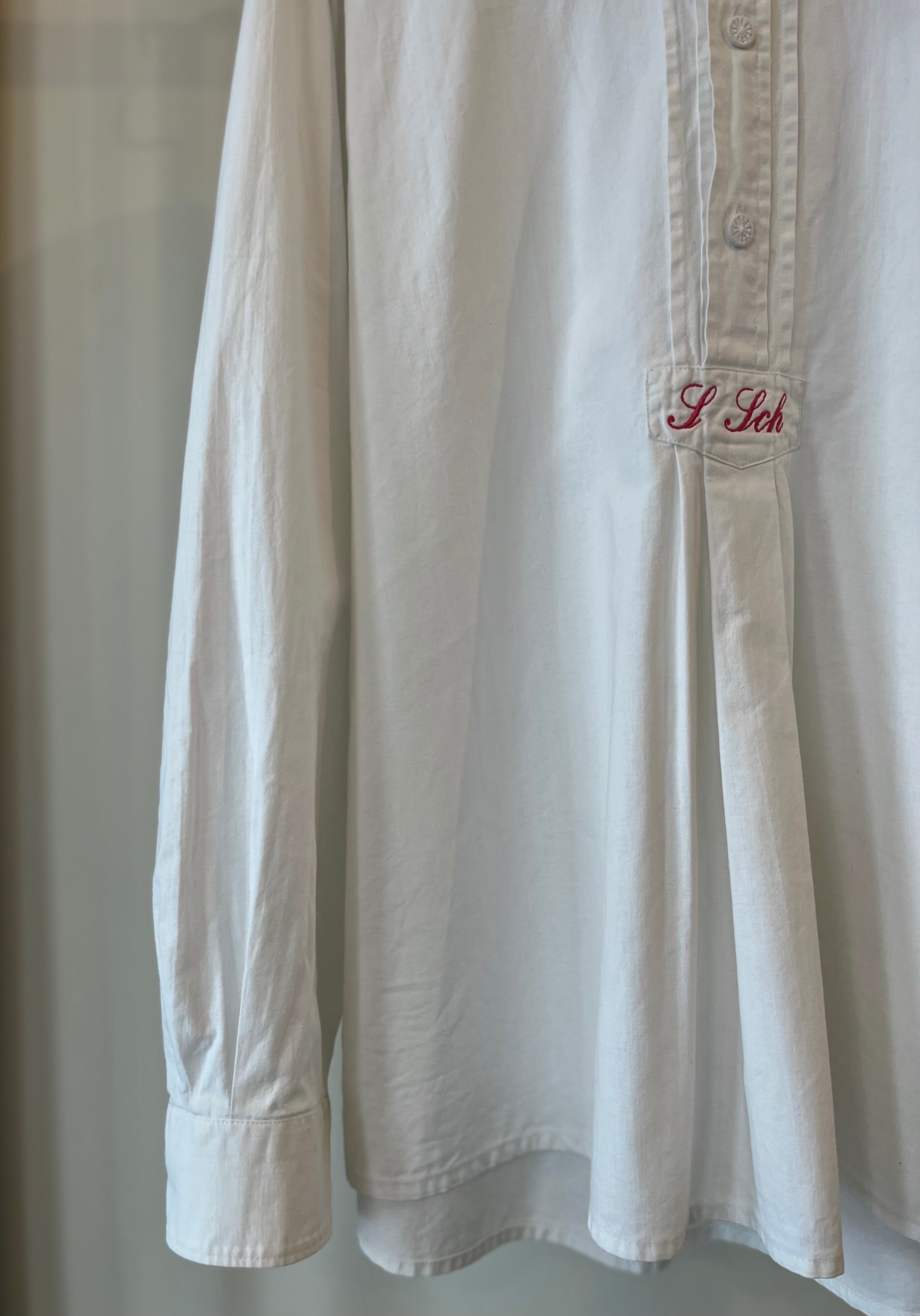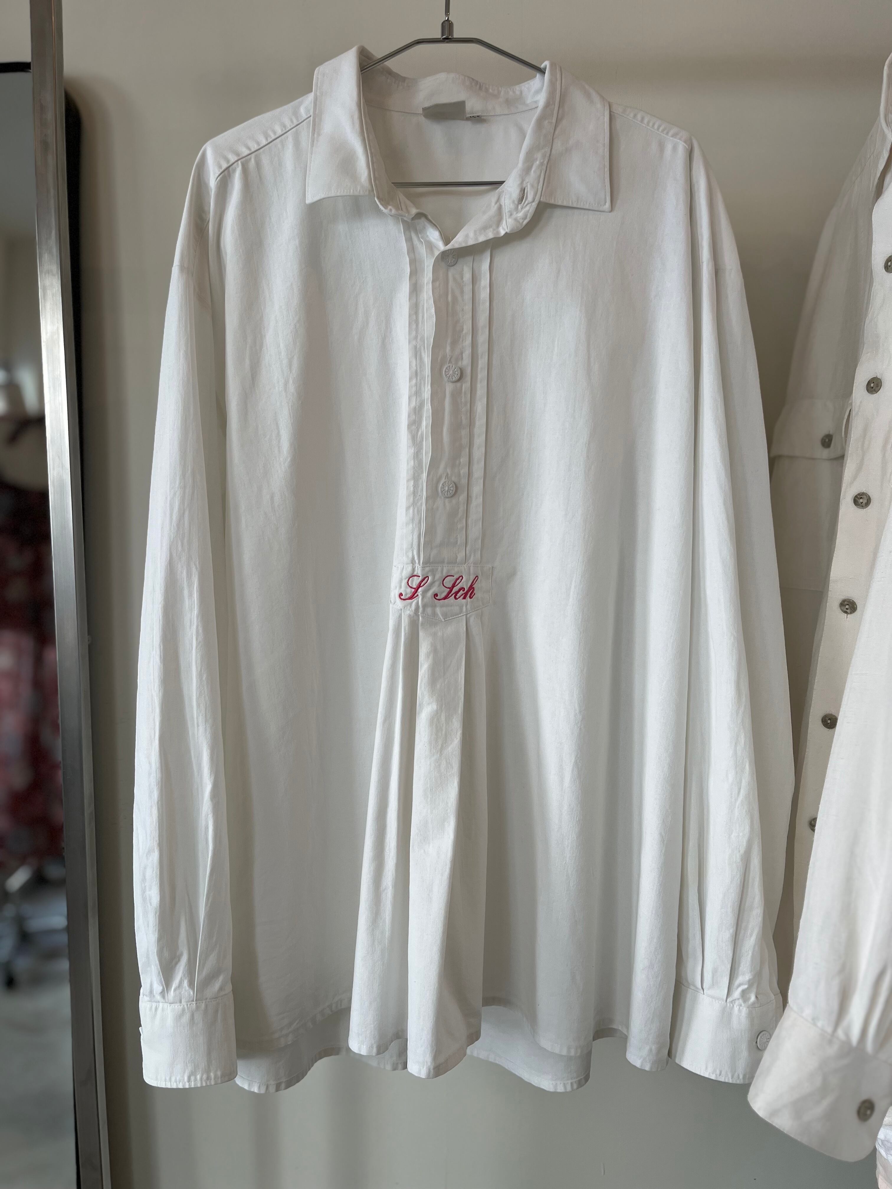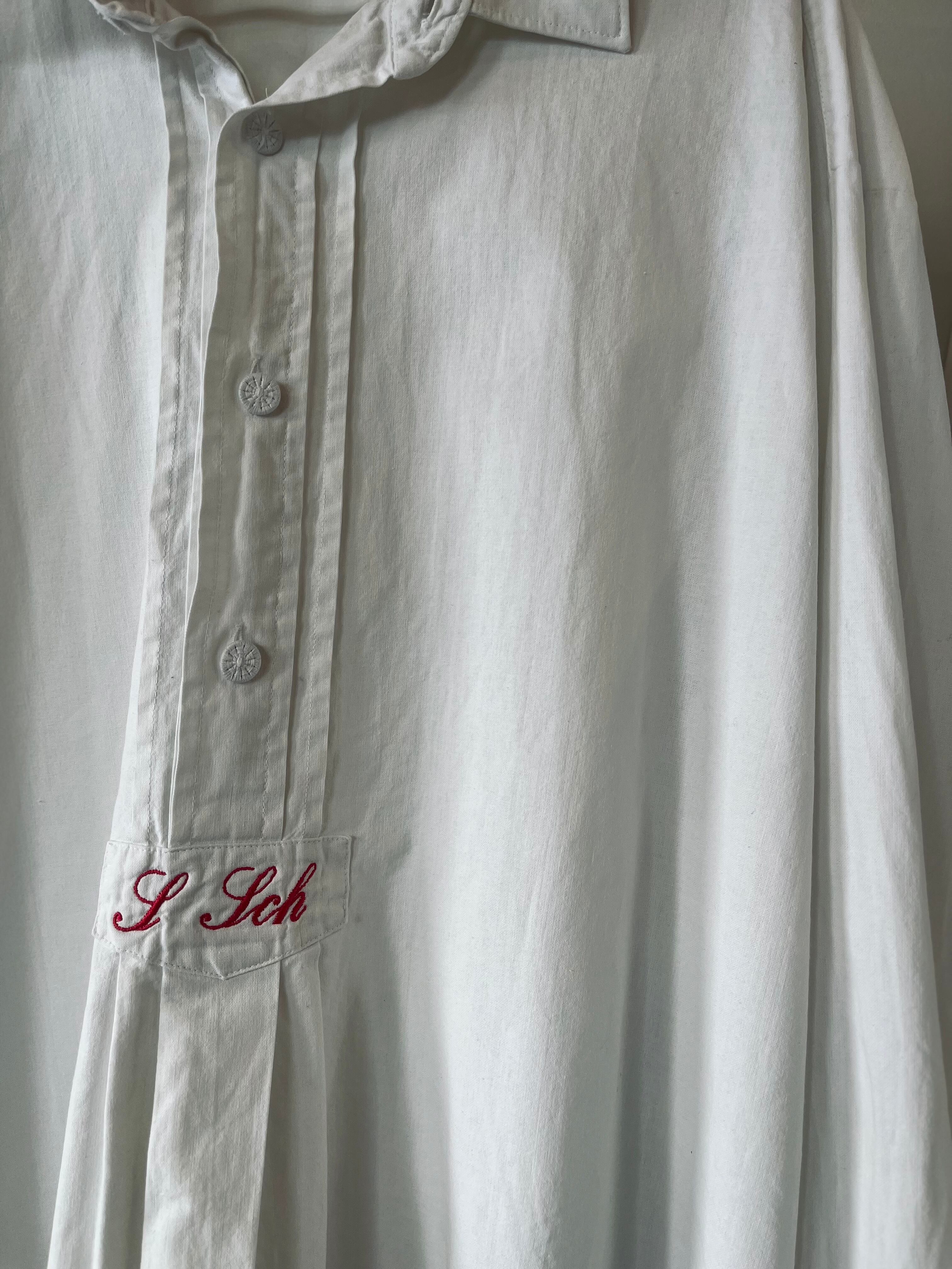 ネーム刺繍が目を惹くデザインですが、凝った糸巻きの釦もとても素敵な一枚です。