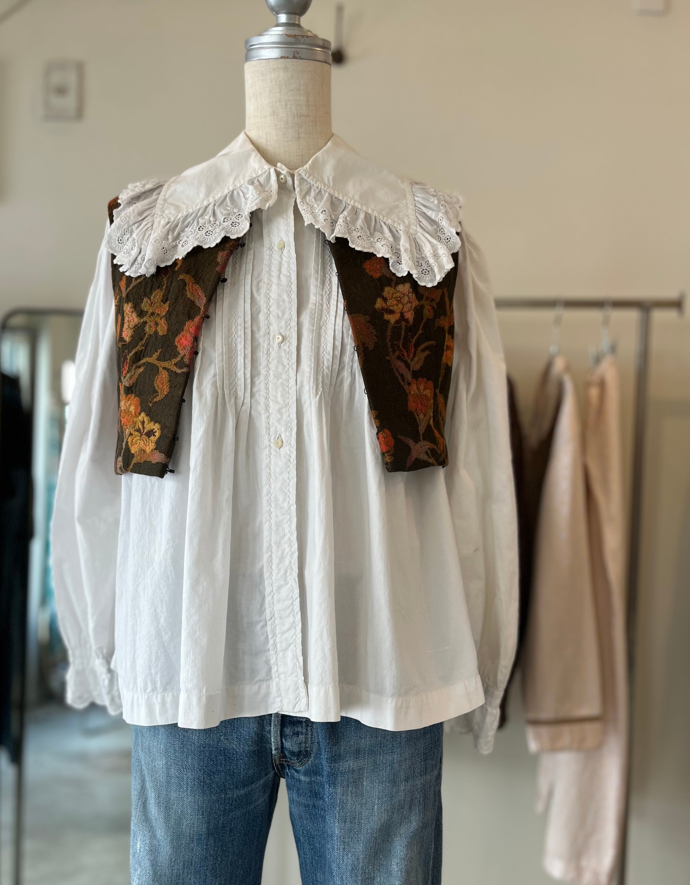 ブラウスやワンピースにレイヤードしてスタイリングにビンテージらしいアクセントをプラスできるアイテムです。