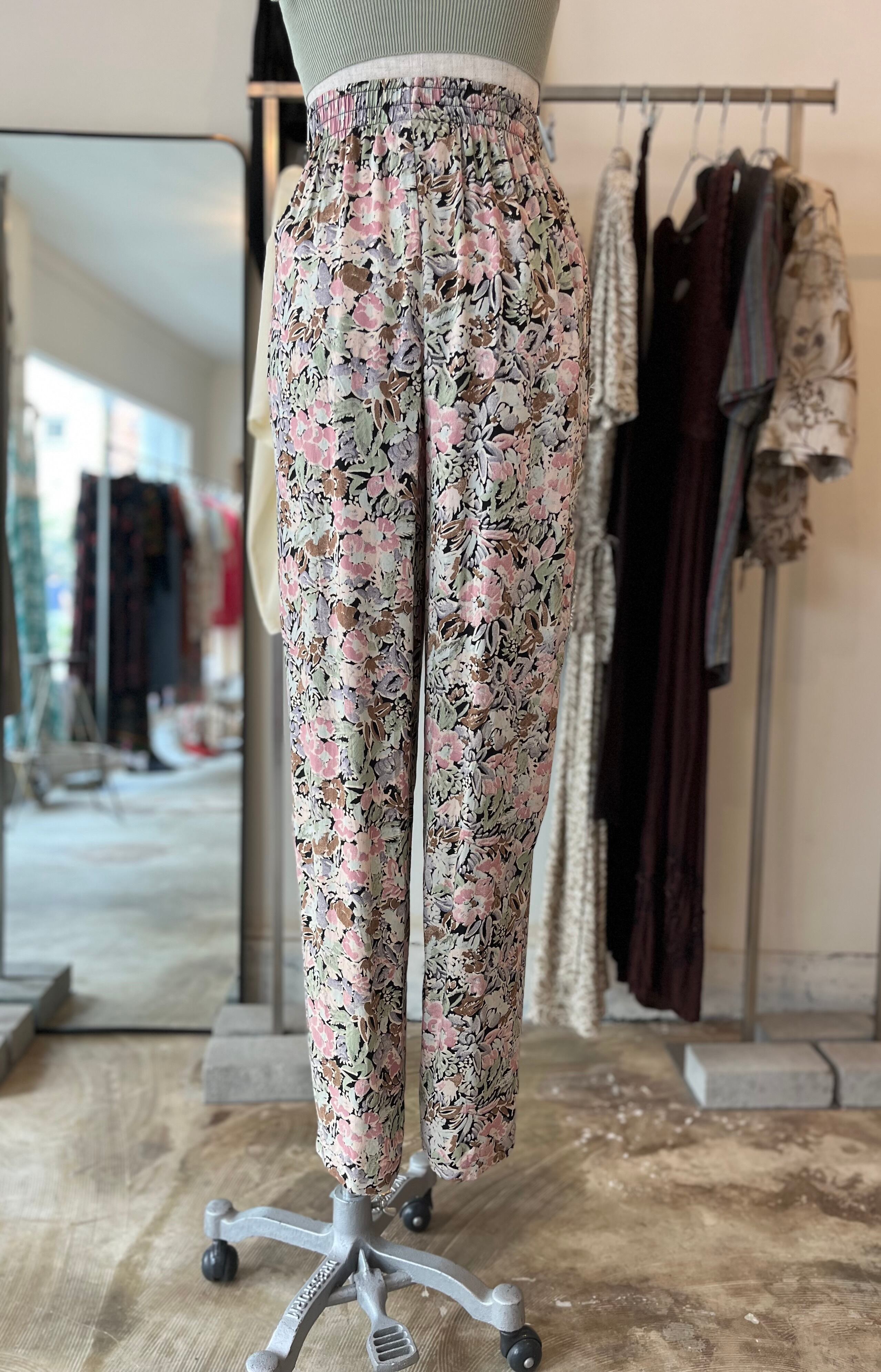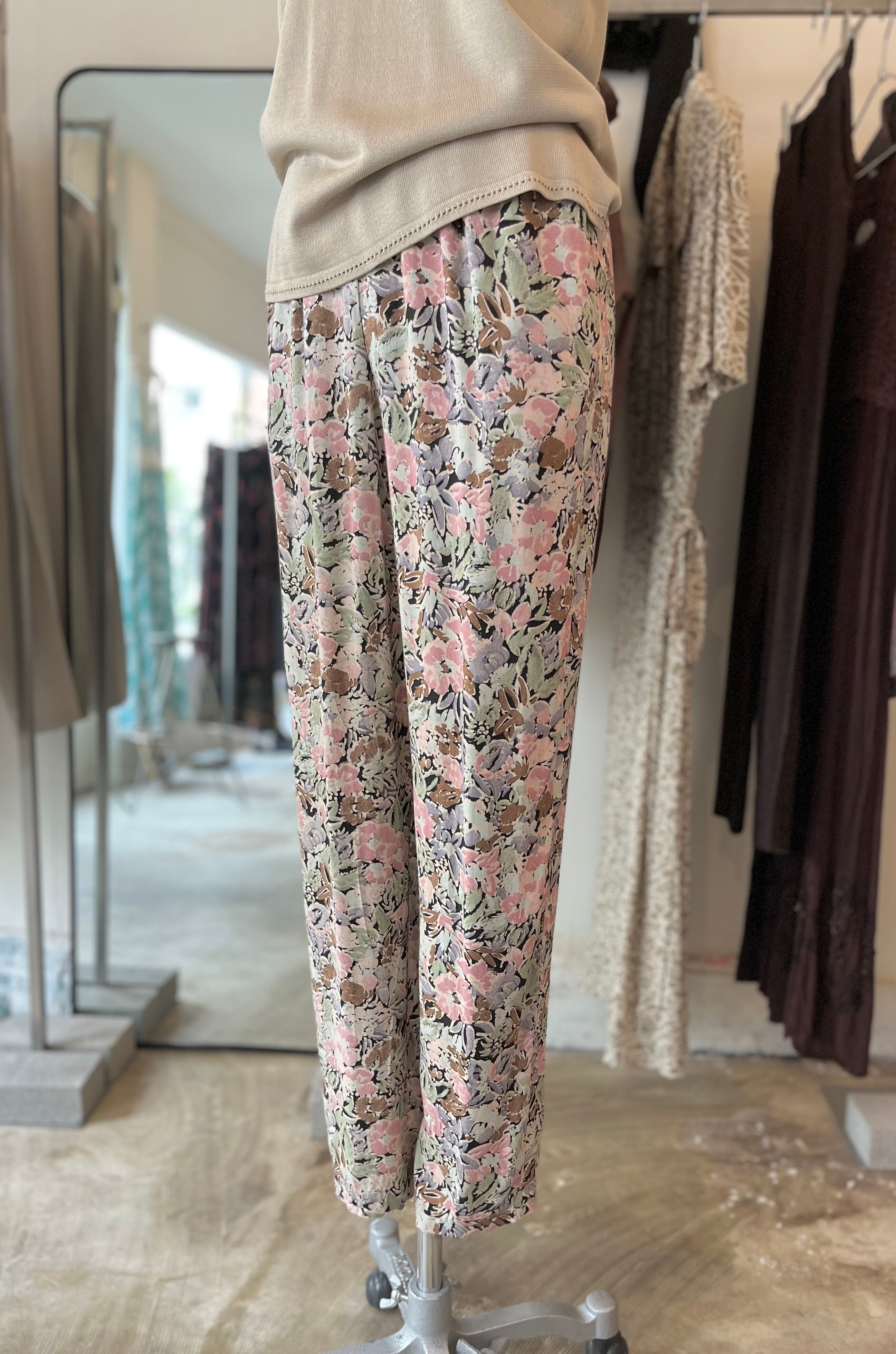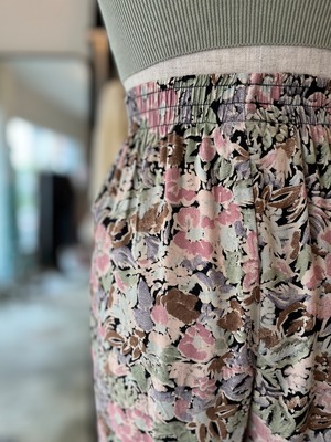 柔らかさのあるカラーリングが素敵で、一見淡い色合いですがベースカラーが黒なのでコントラストもあり、コーディネートも合わせやすい柄物です。