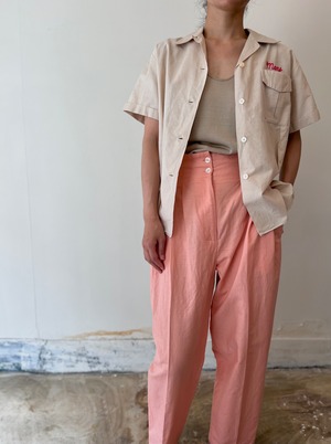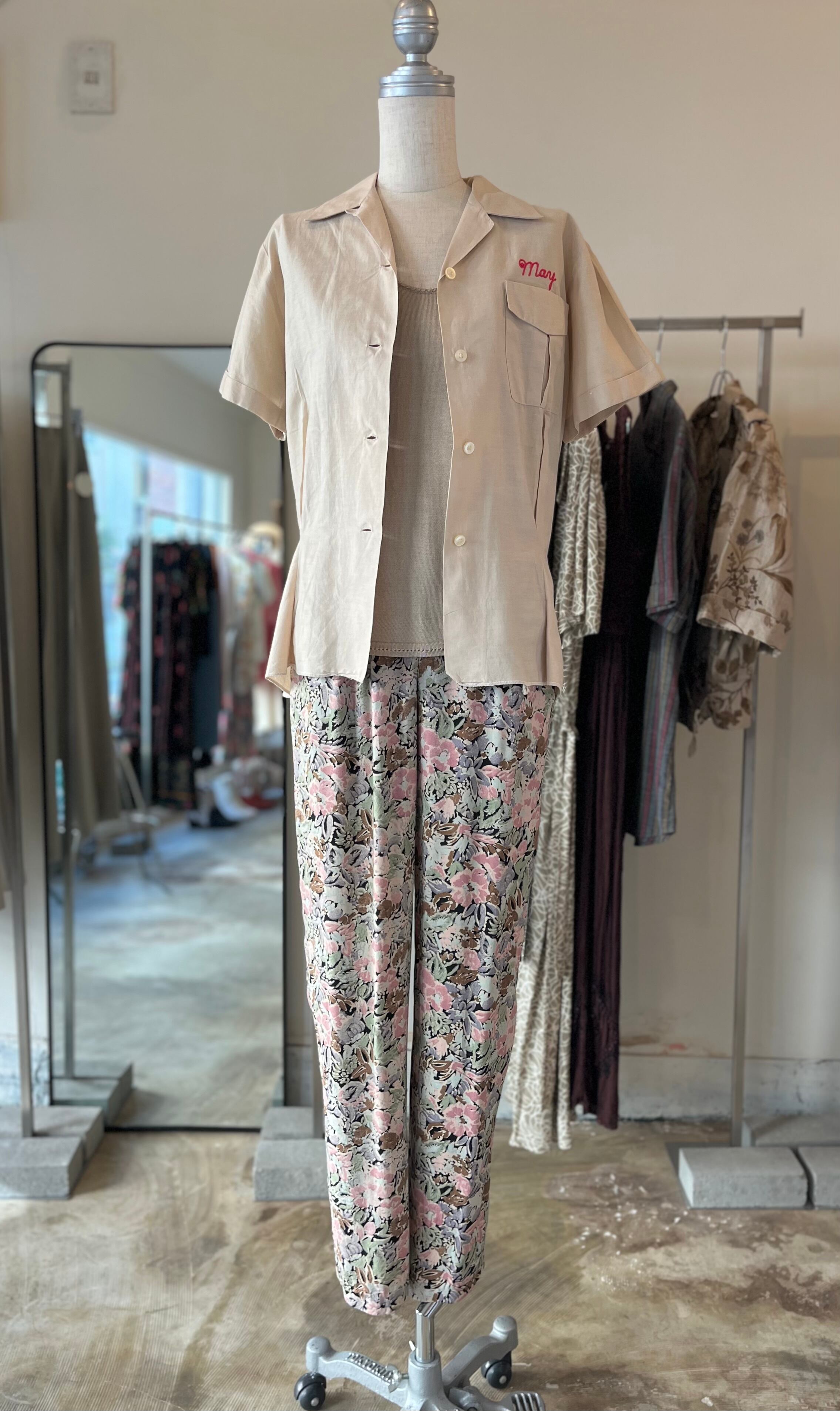ボーリングシャツのようなデザインですが、カフェやダイナーの制服だった可能性もあり、キャッチーな刺繍とカラーが楽しめる一枚。