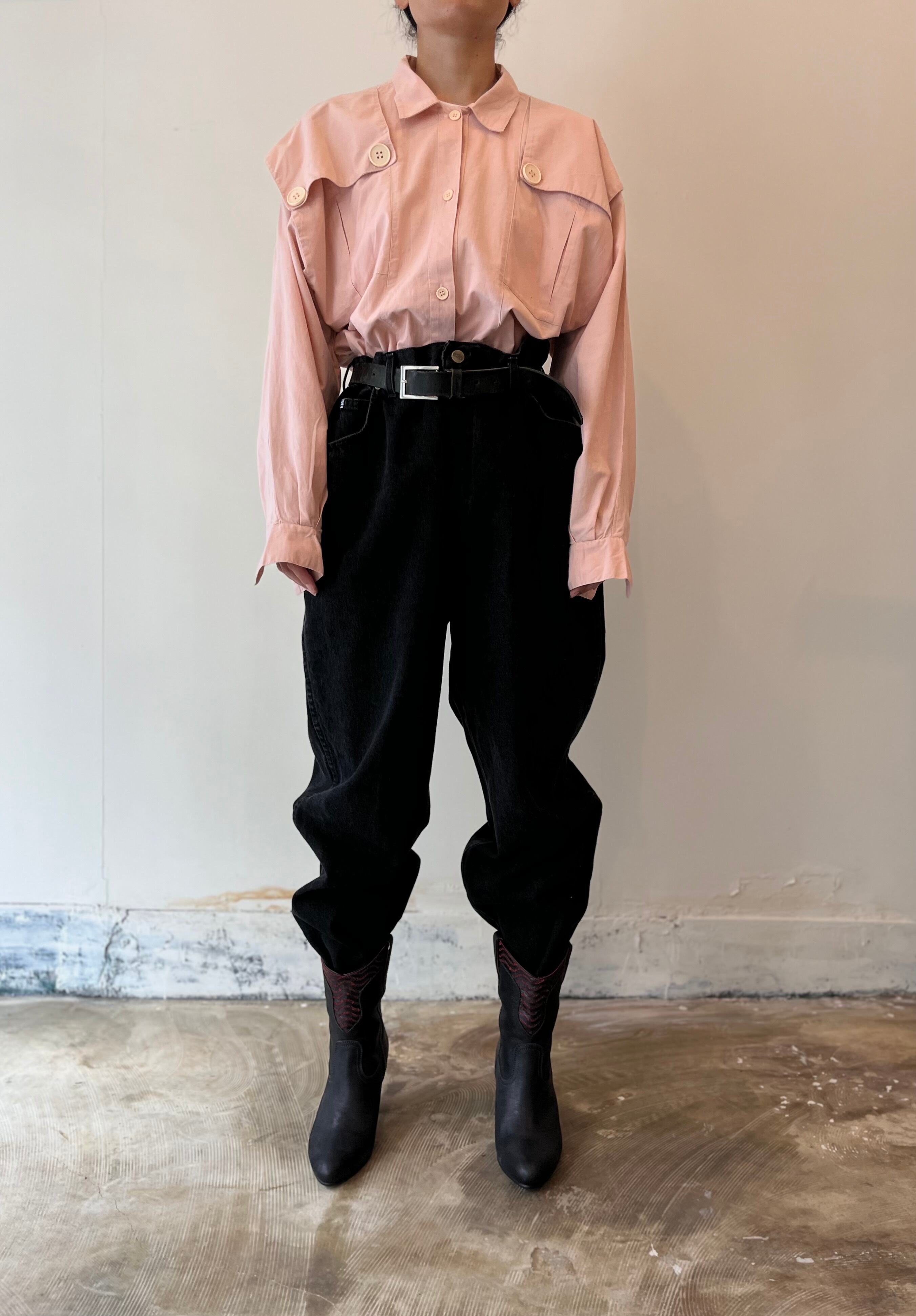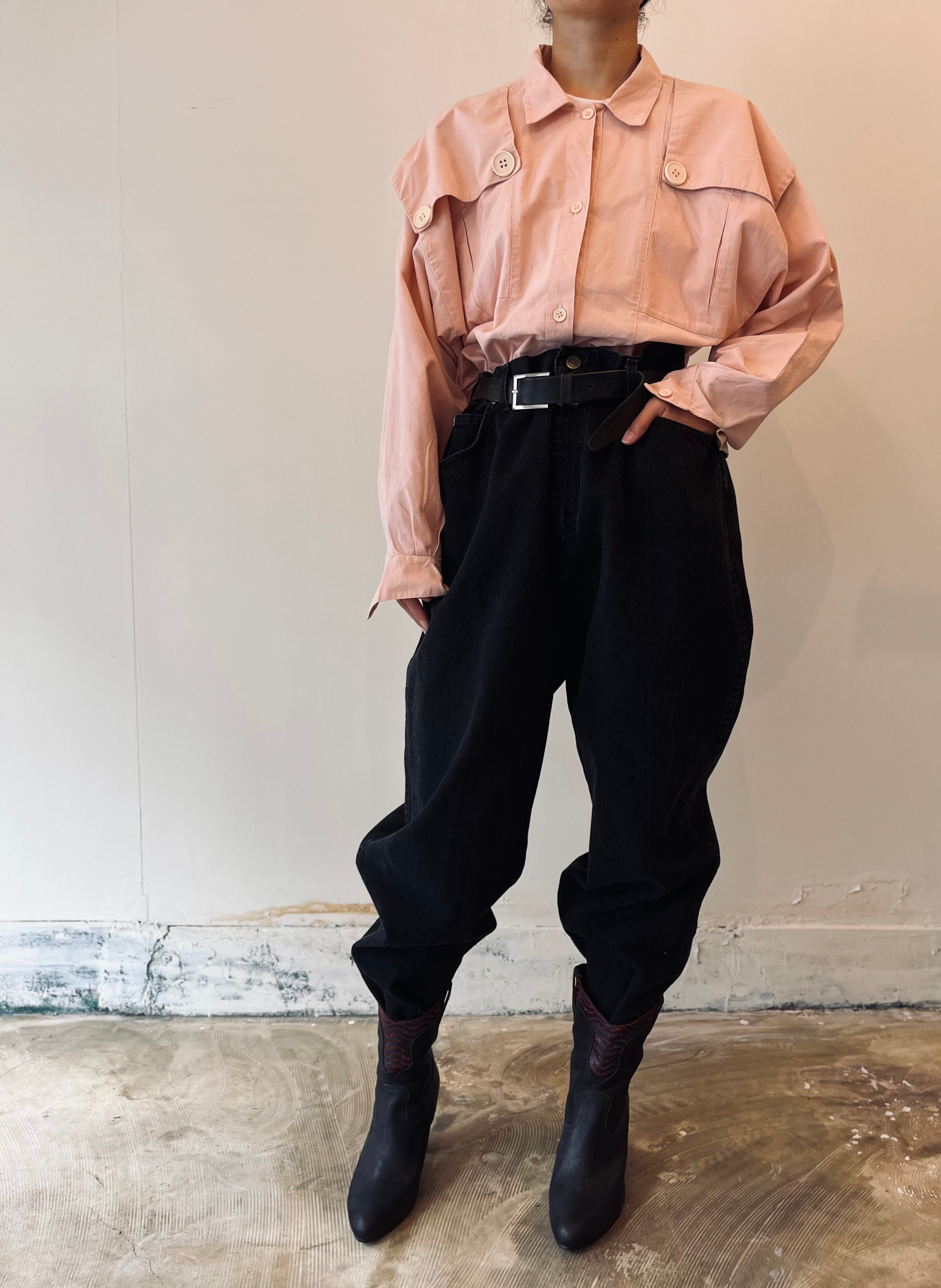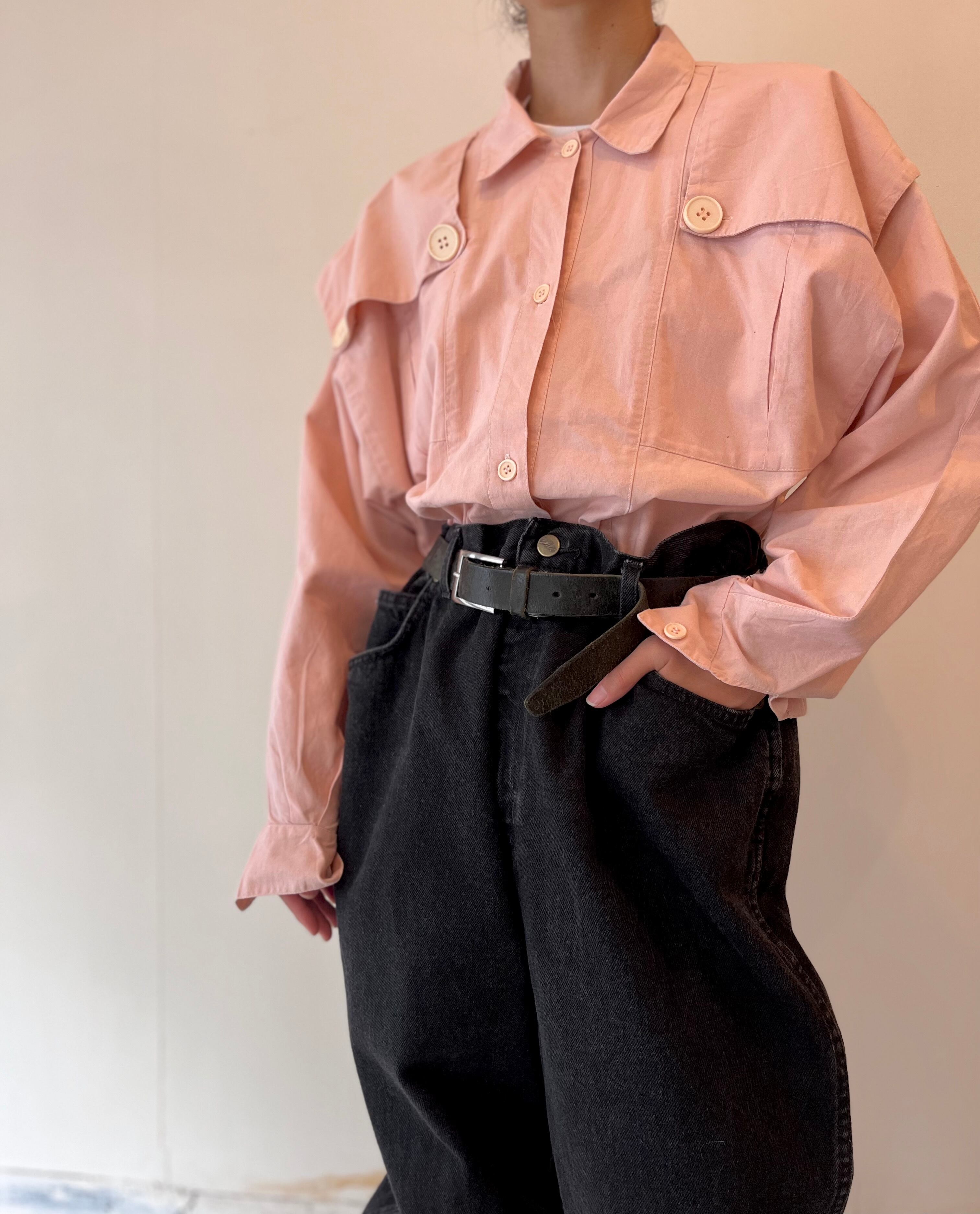 ワーク感ある大きいポケットのディテールがポイントのシャツジャケットです。無骨なデザインと優しい色とのギャップが魅力です。
