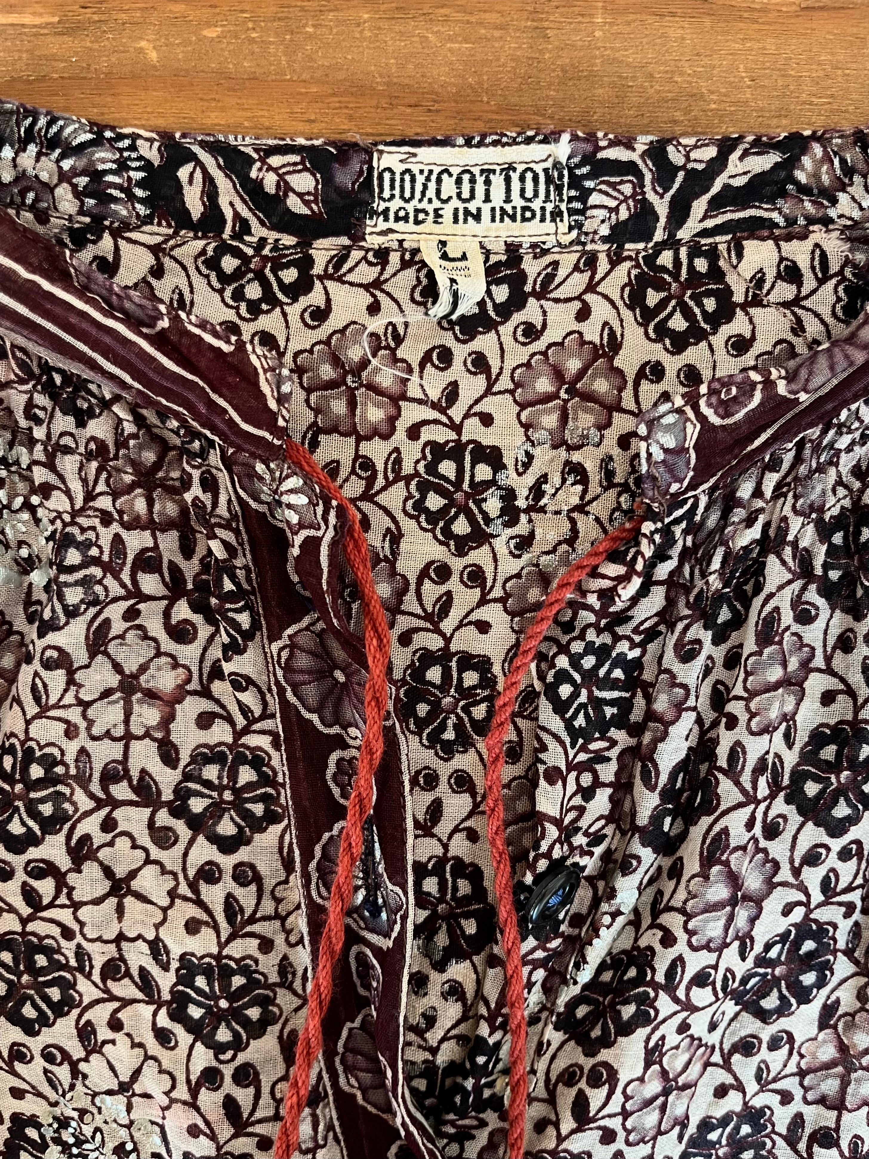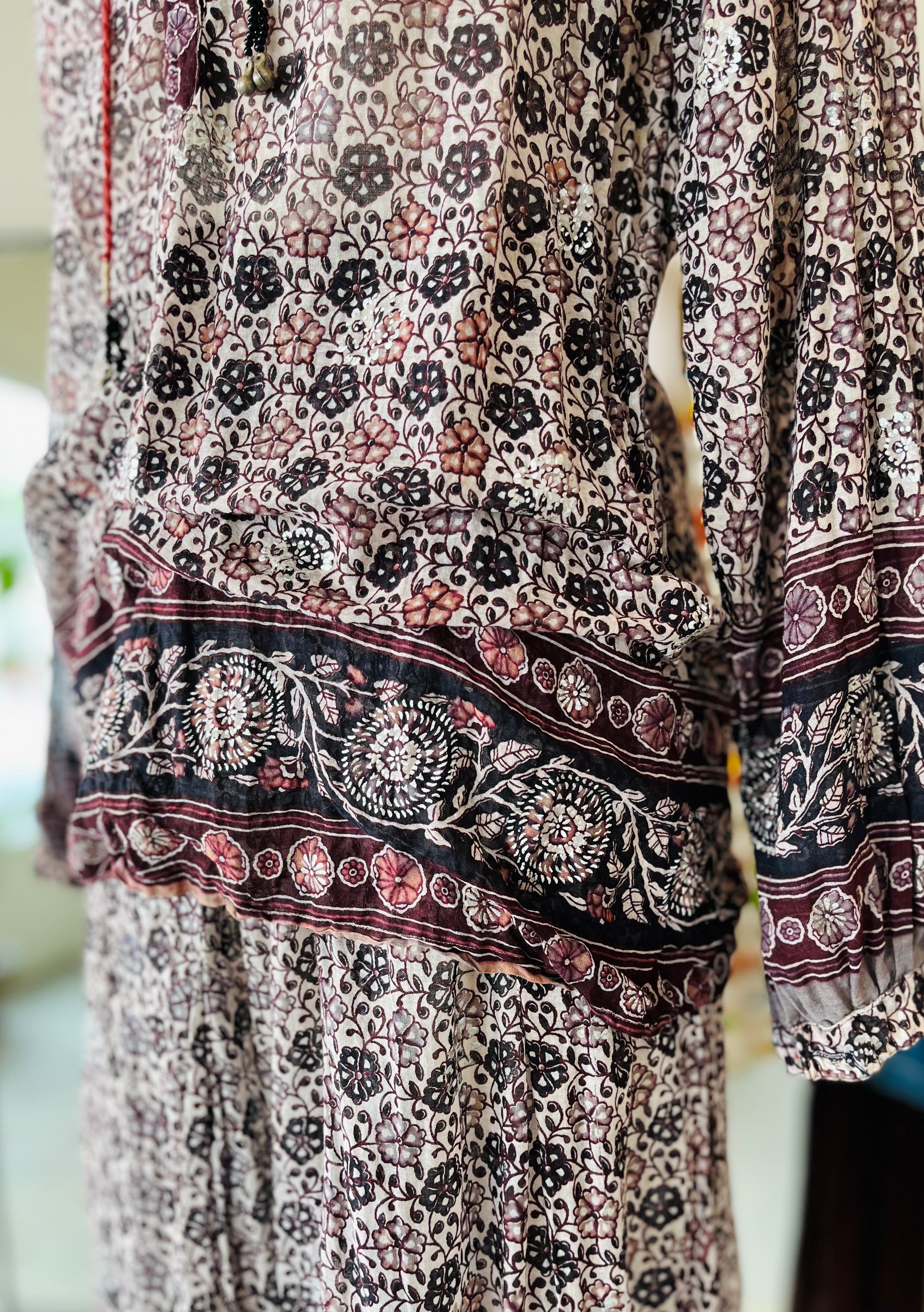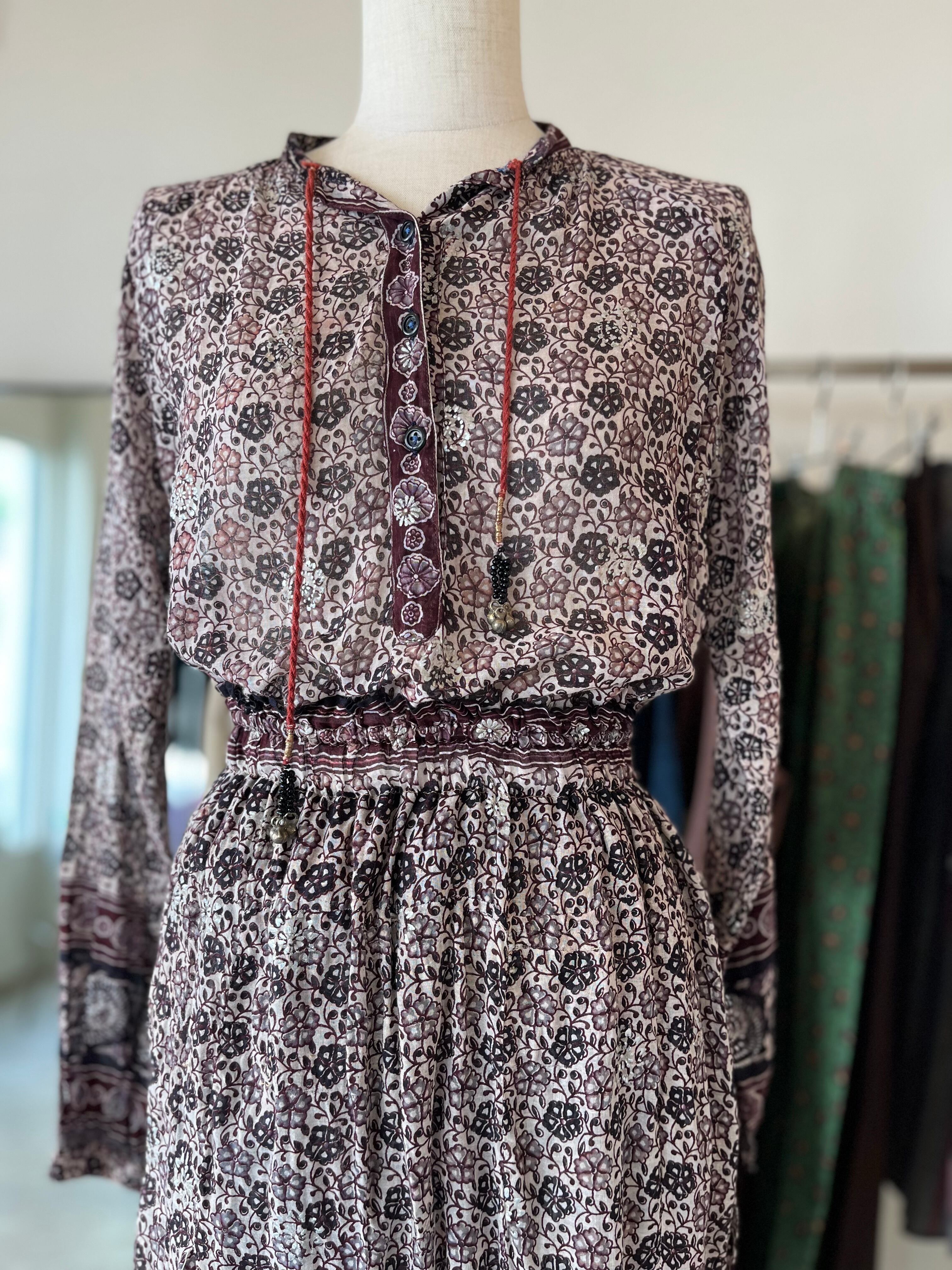 インドコットンらしいブラックプリントで、シルバー箔のプリント部分もアクセントになっています