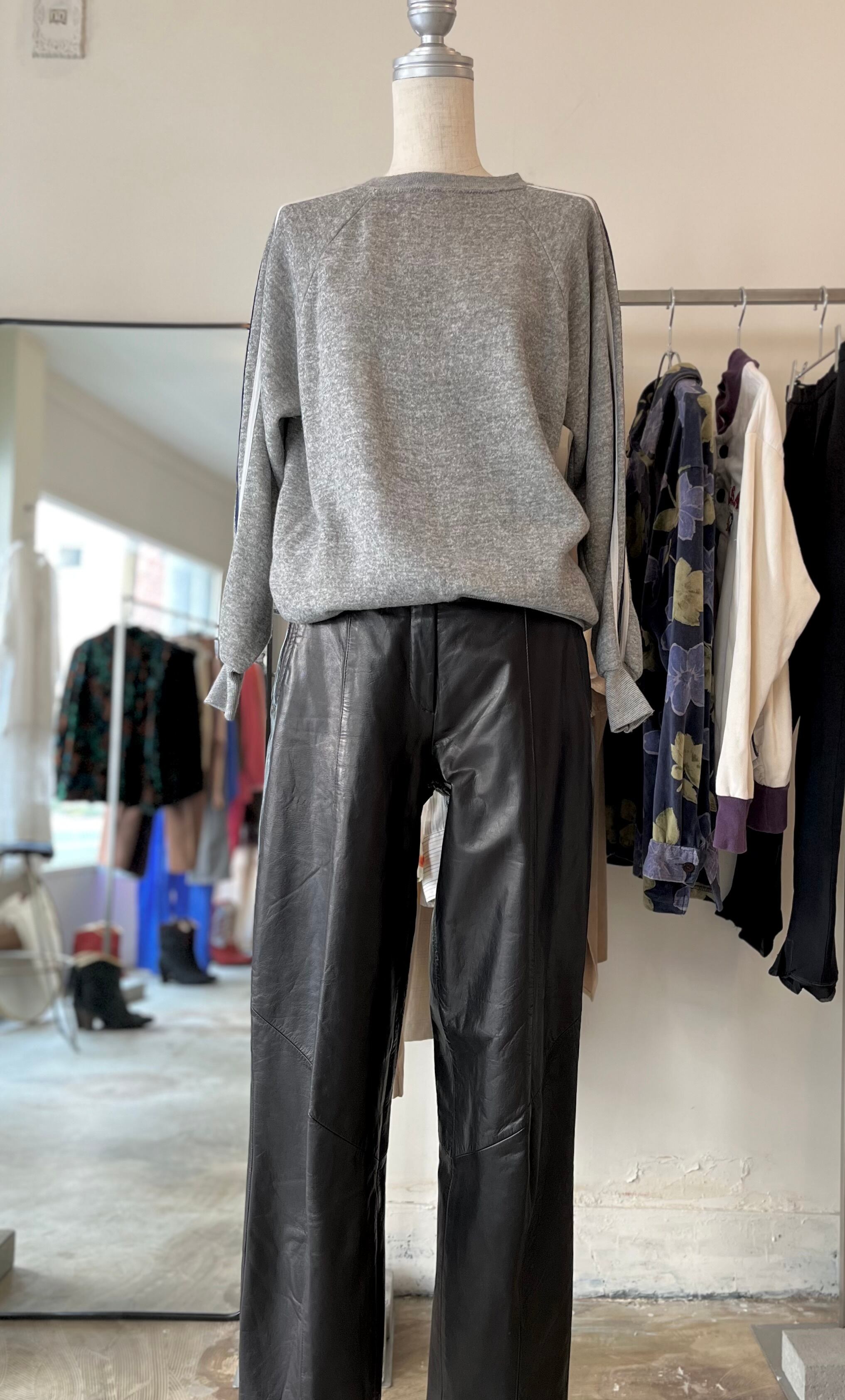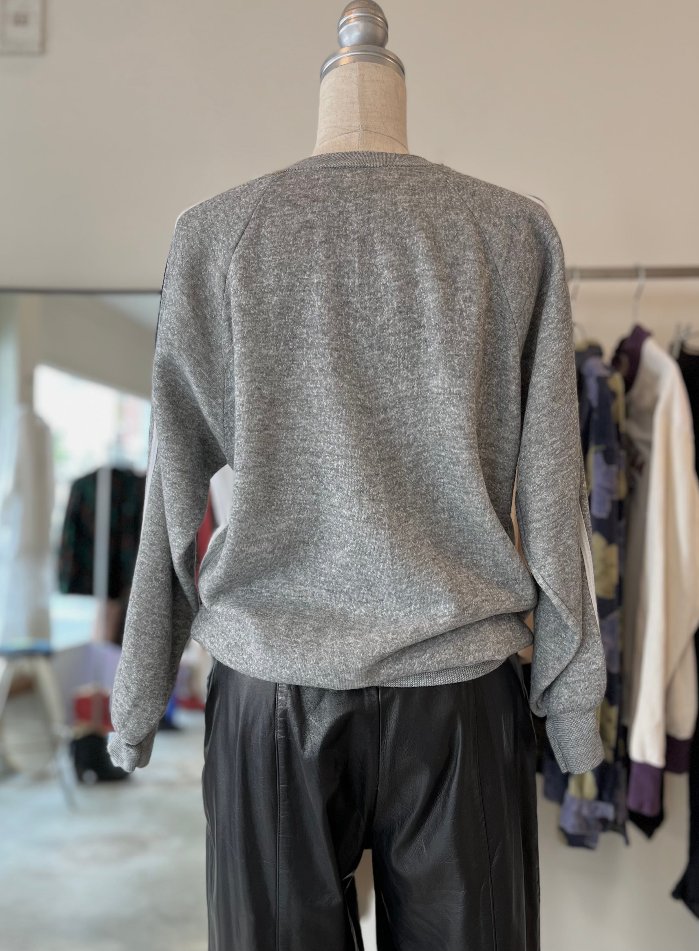 チャンピオン等のガシッとした度詰の生地と違い、甘めのゲージでガーゼ調の裏毛なので裏起毛でも軽く柔らかいのが特徴です。スウェットとニットの中間くらいのテンションで、女性にも着用していただきやすいアイテムです。