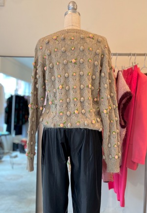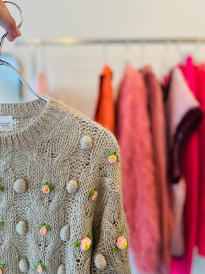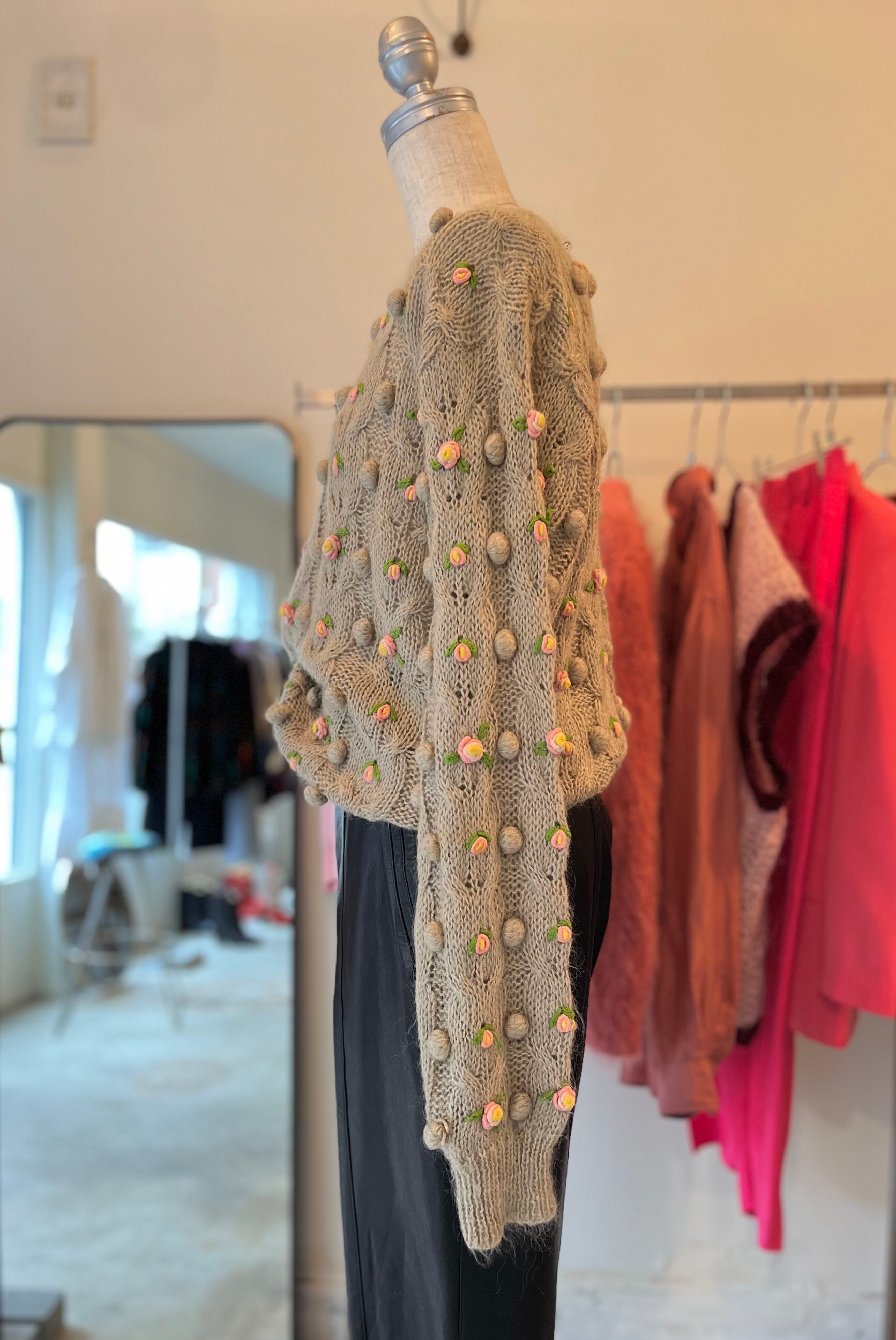 ノスタルジックなディテールが古着ならではの1着です。グレージュとピンクのお花の配色が絶妙。