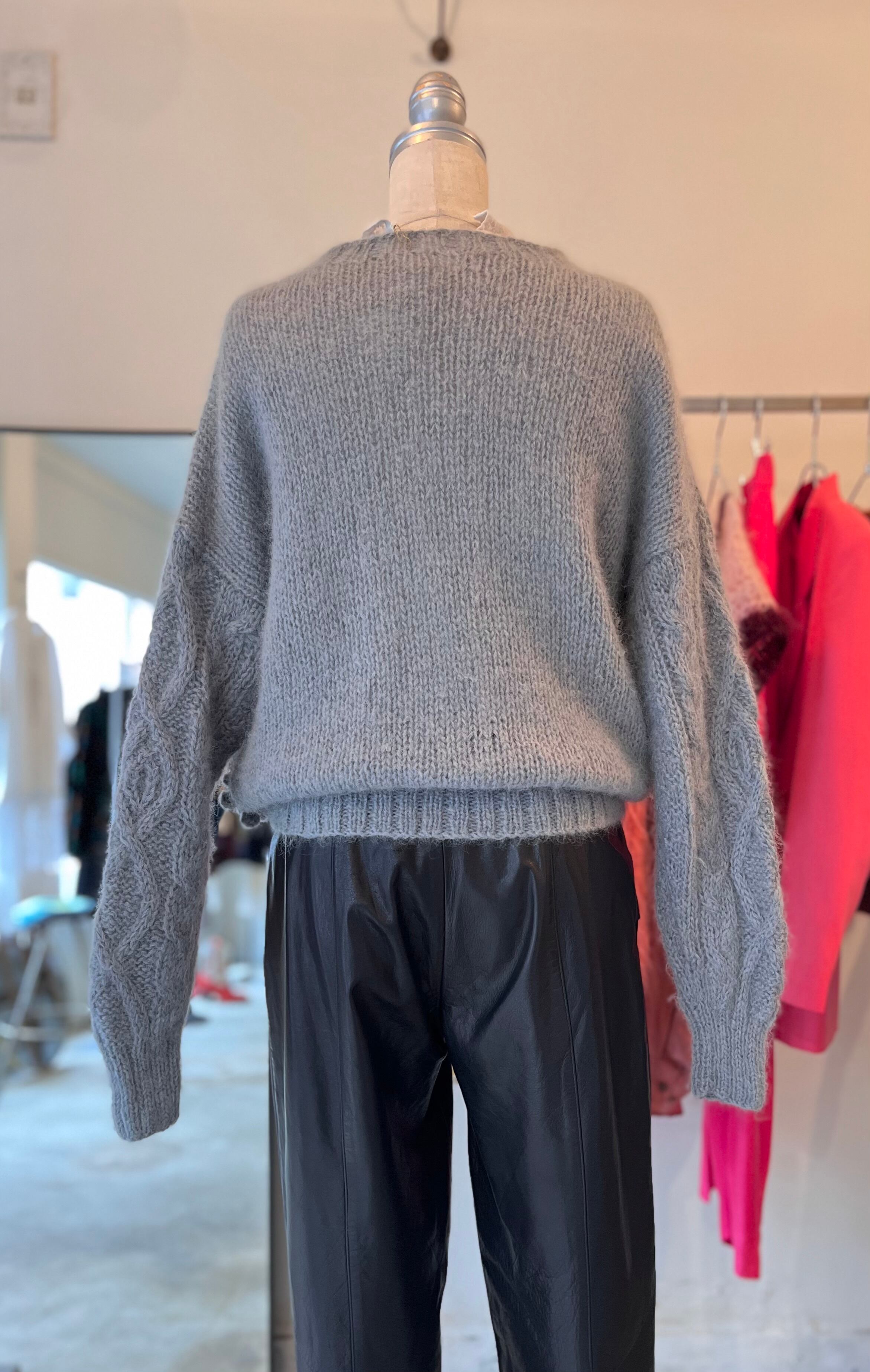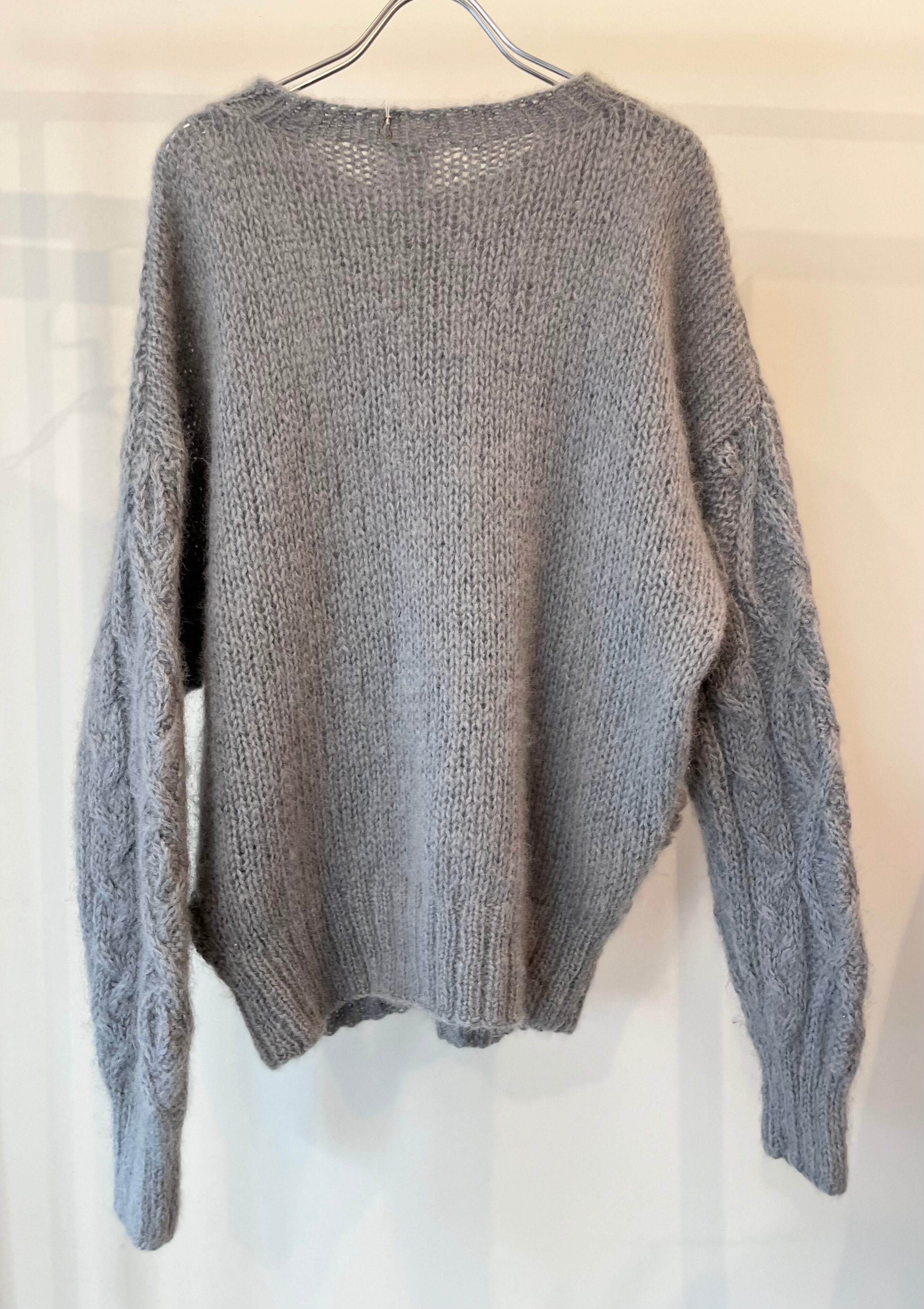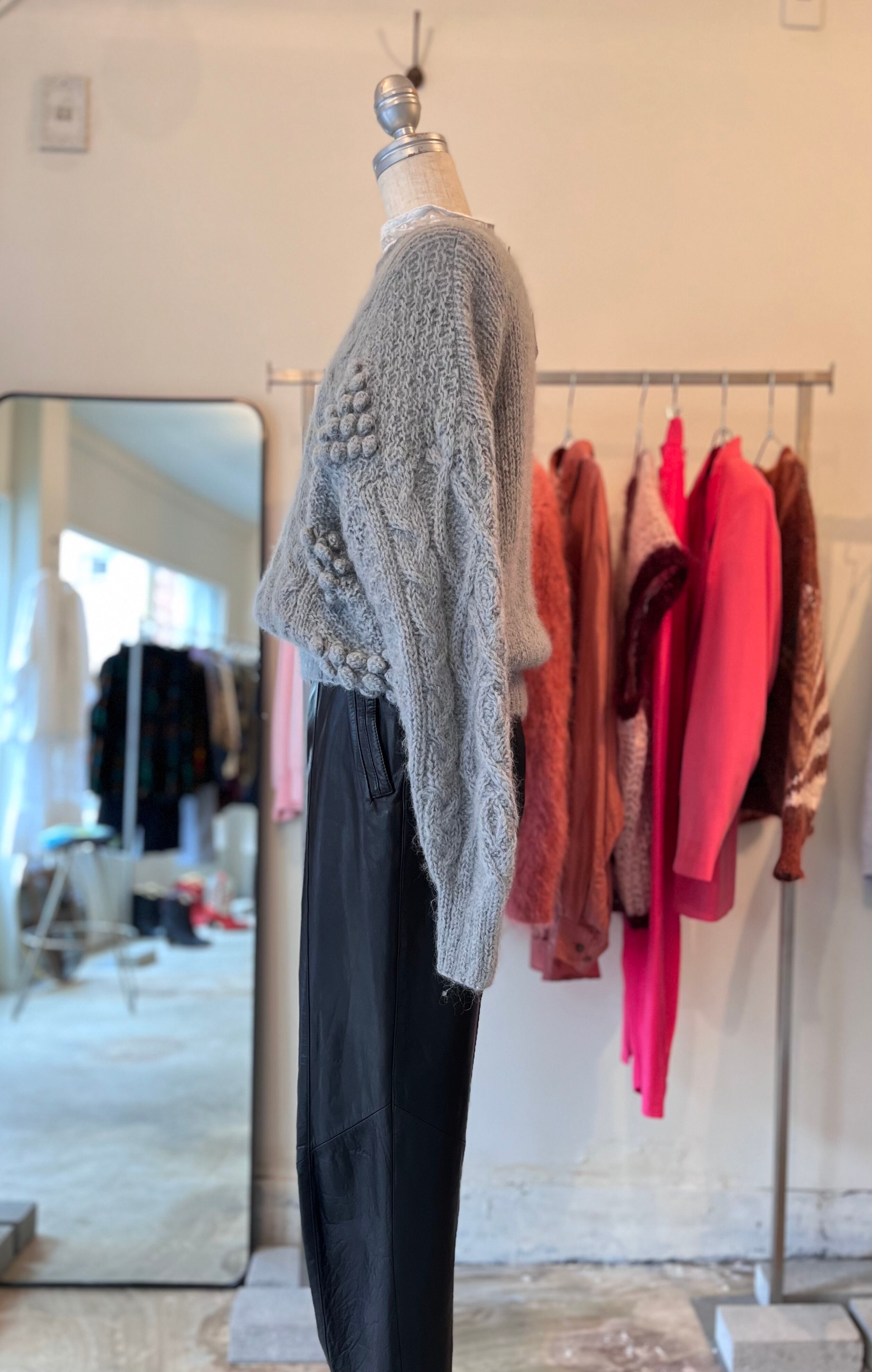 あまり見かけない位置に付けられたポンポンディテールが可愛くてデザイン性のあるニットです。一見ノーマルなケーブルニットのようで、一癖あるスタイルにしてくれる、ヴィンテージならではの1着です。