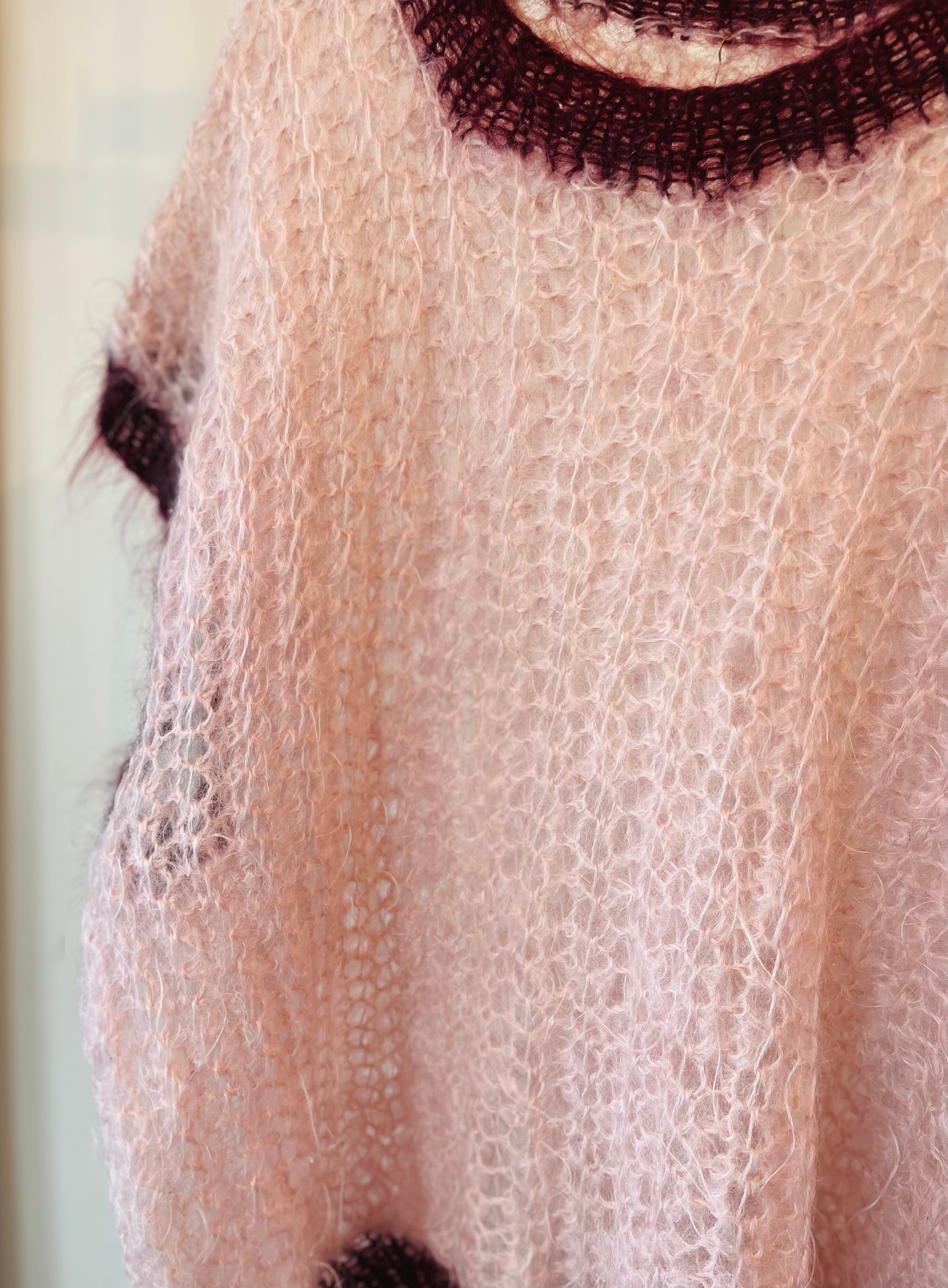 ※フロント中心付近に穴のように見える部分がございますが、編み違えによるゲージ不良で破れではございません。