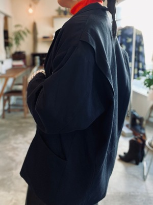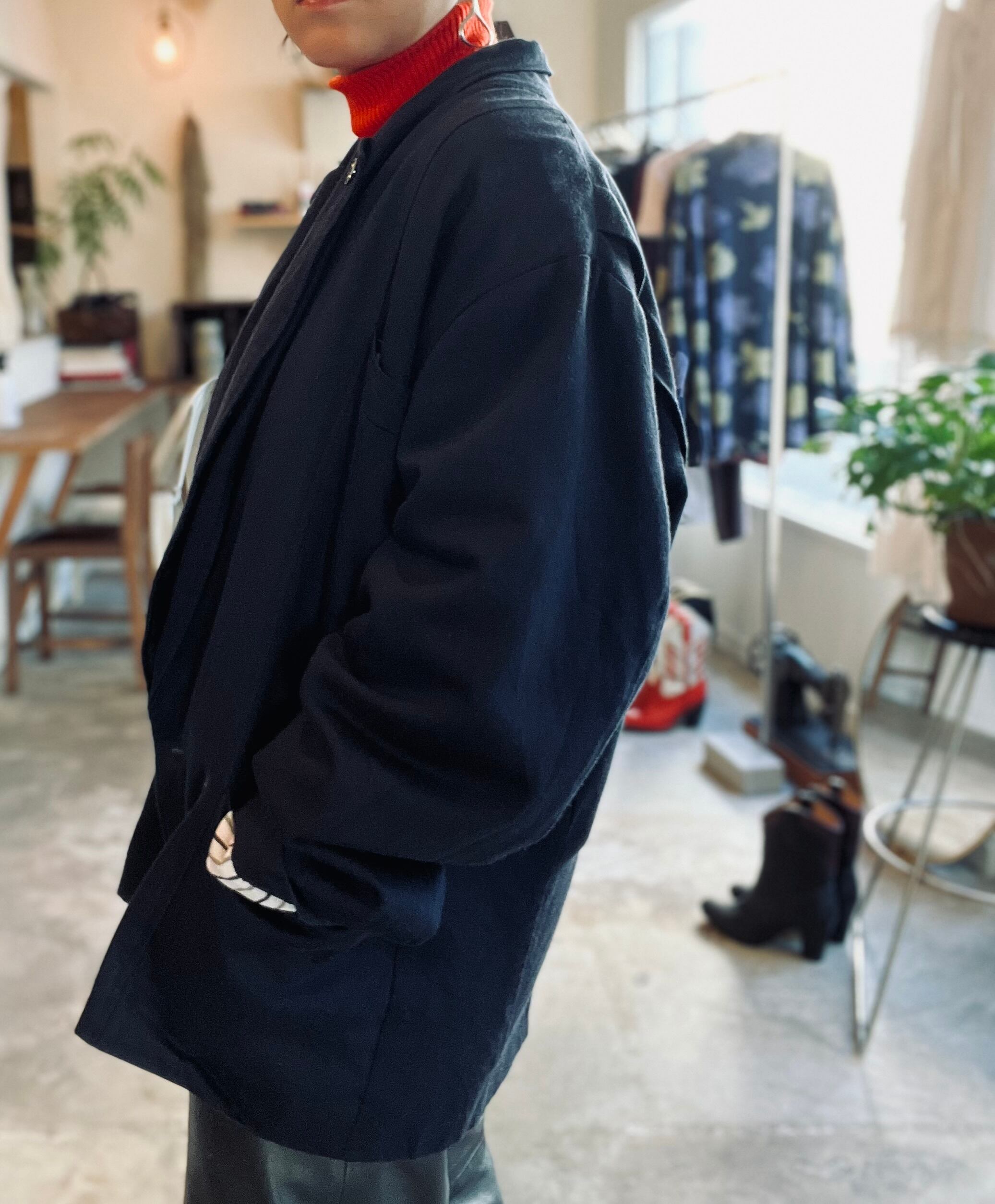 デザインショールカラーやアクションプリーツなど、一つ一つのディテールがフォーマルなジャケットをカジュアルに崩していて、デイリーに着用しやすいデザインとなっています。