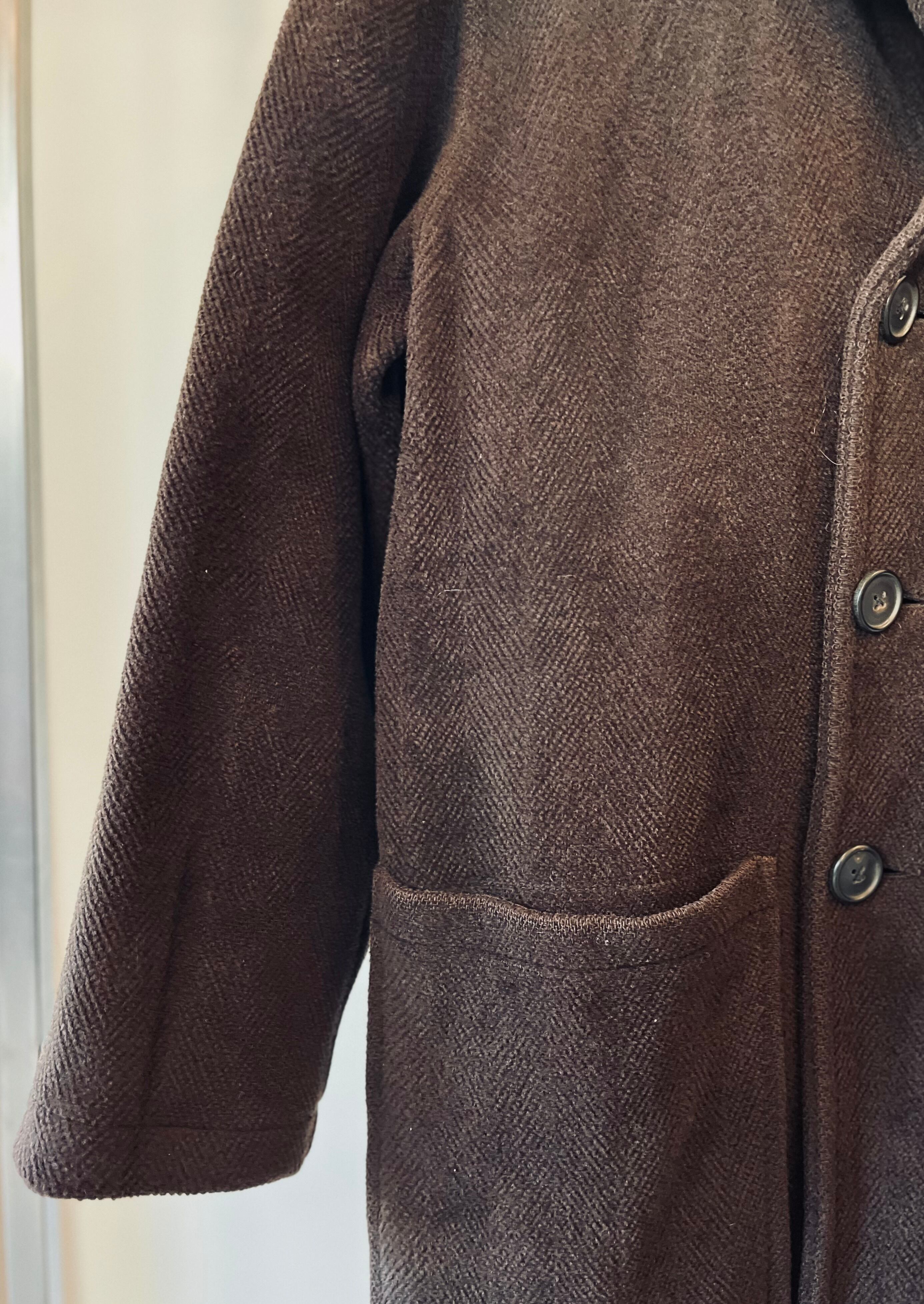 生地はざっくりとしたヘリンボーン地で、マットなダークブラウンです