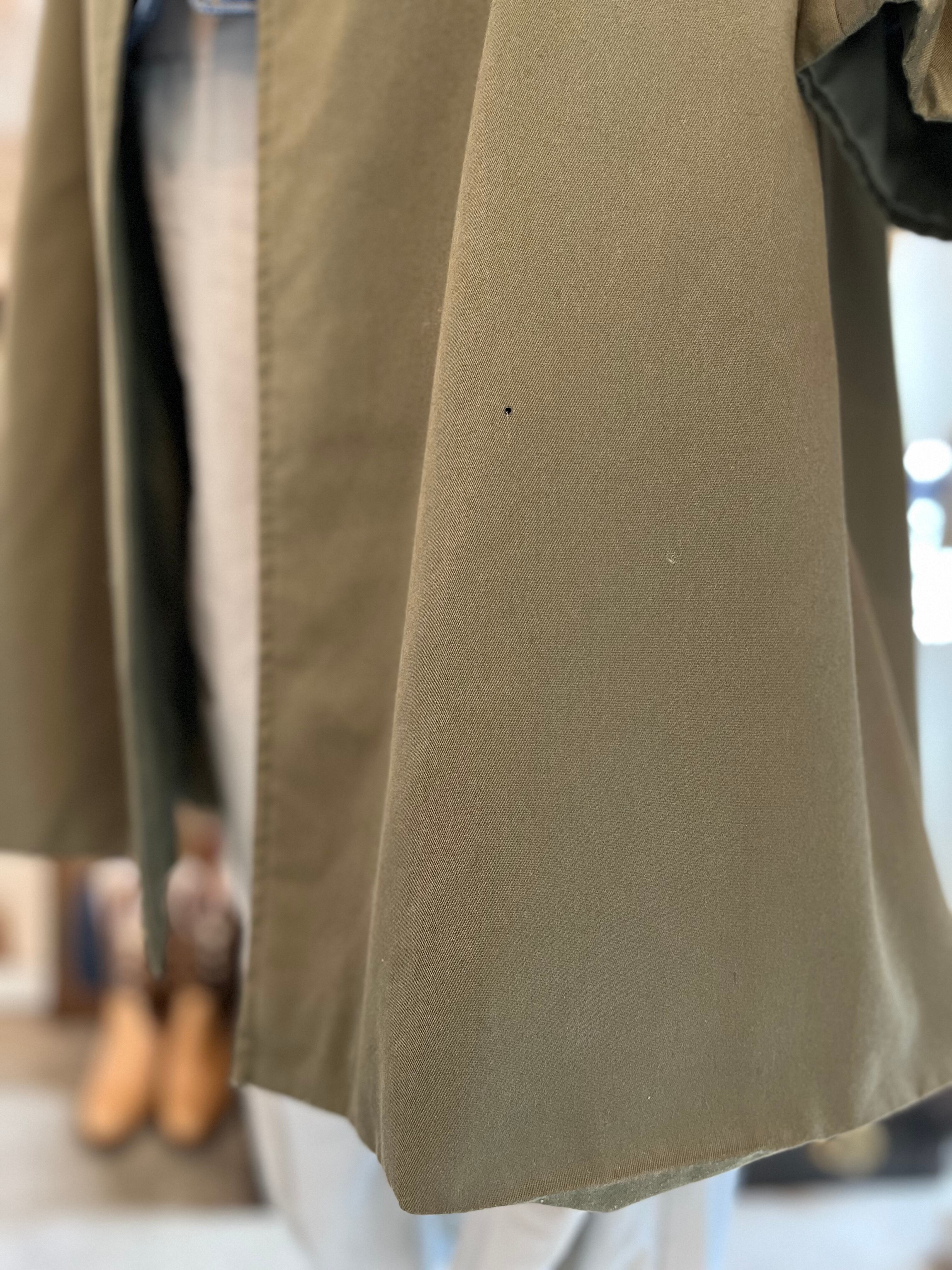 カジュアルな作りのトレンチコートですが、ディテールはしっかりとフォーマルに基づいておりきちんと見える1着です。