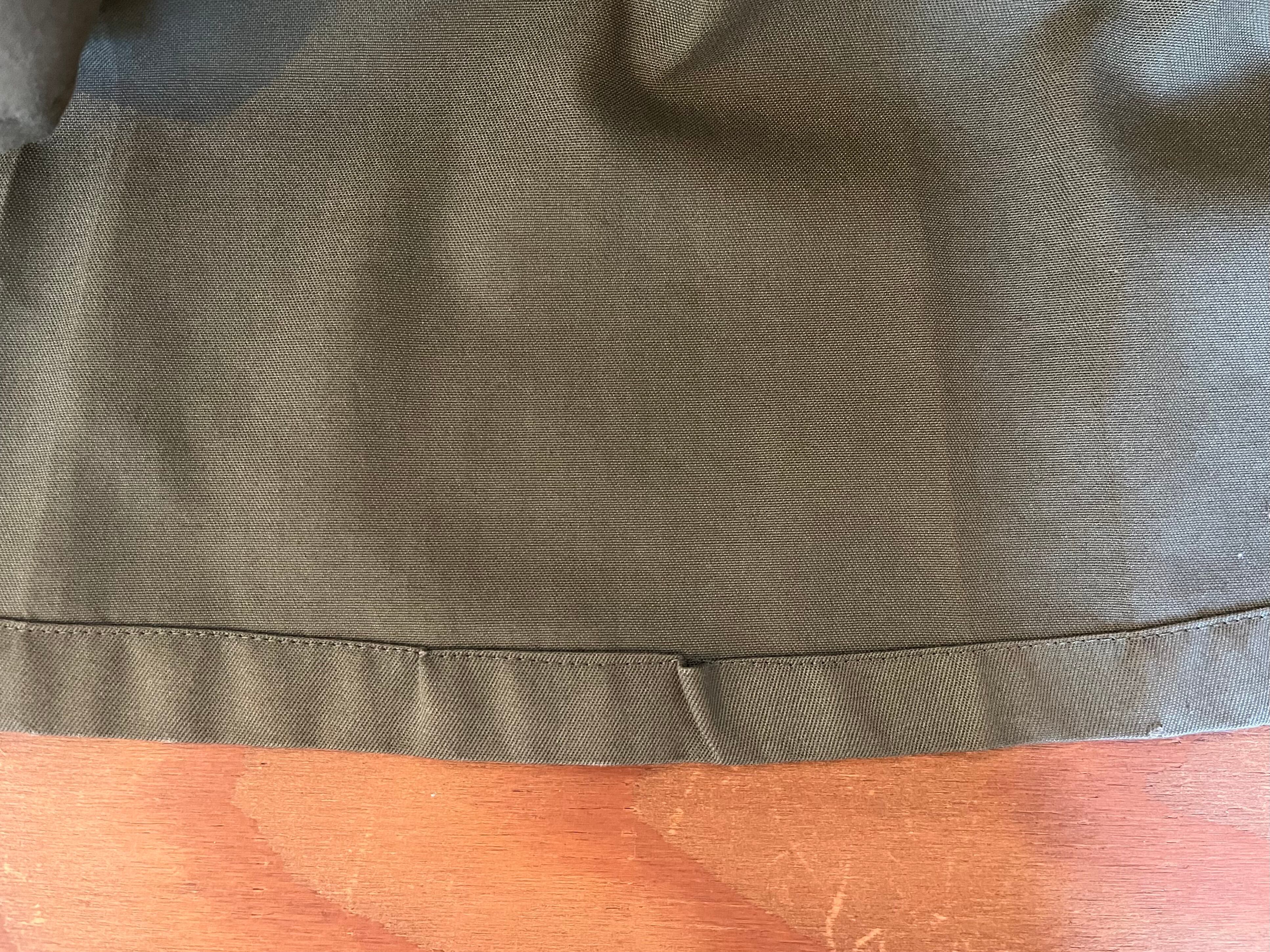 おそらく丈は以前の持ち主が直したのか、裏側 にやや始末乱れがございますが着用に問題のあ る不良はございません。全て写真にてご確認お 願い致します
