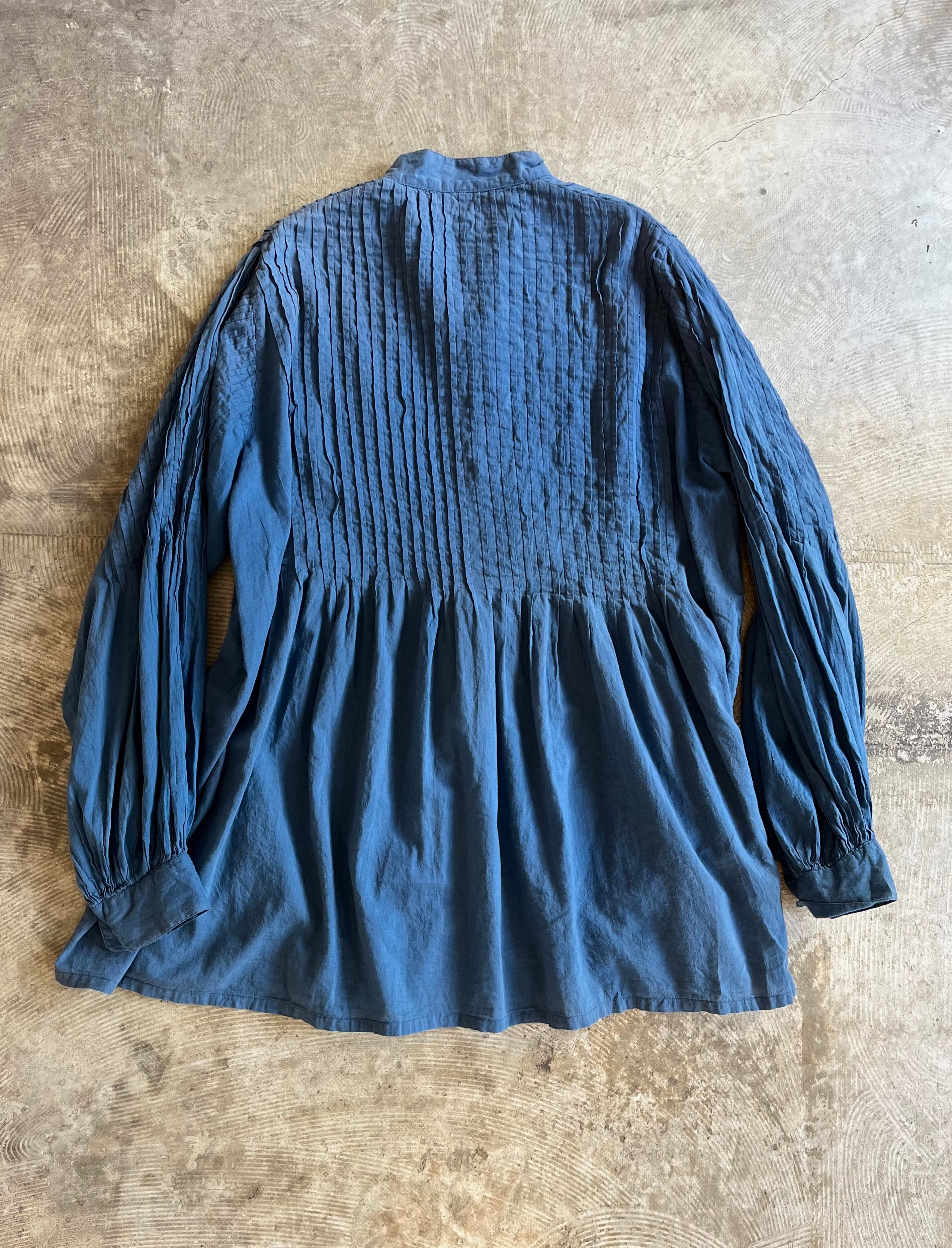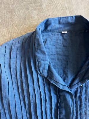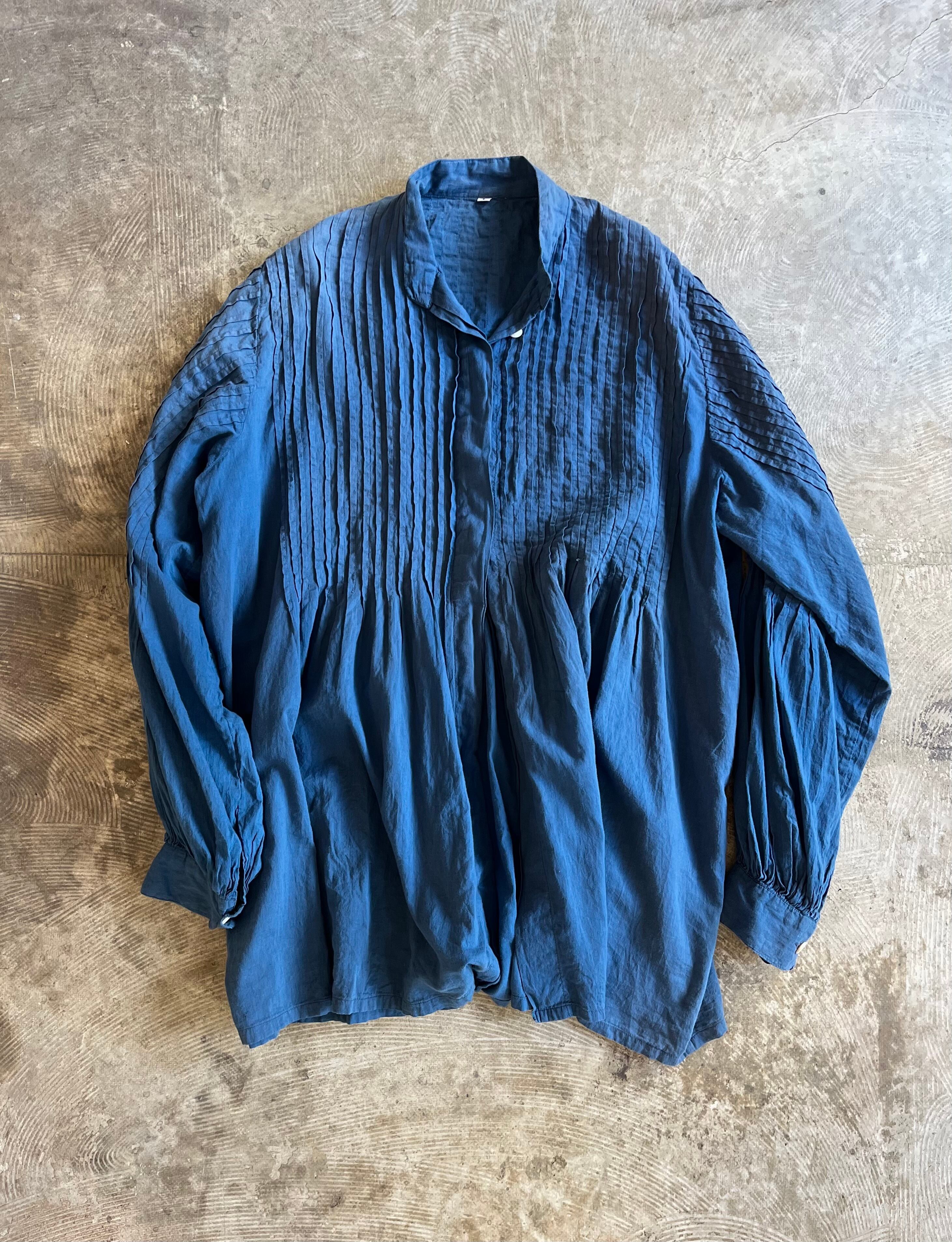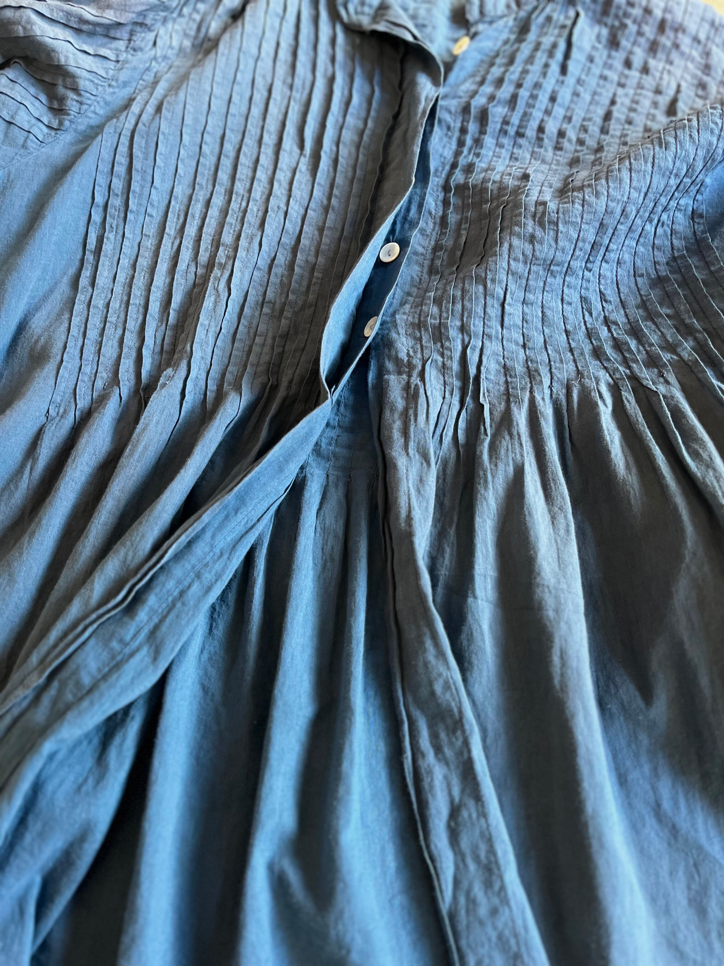 インド綿の軽くて優しい肌触りのビンテージブラウス。見頃だけでなく袖まで贅沢に施されたピンタックが美しく、コンディションも良好です。