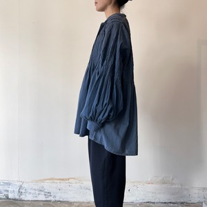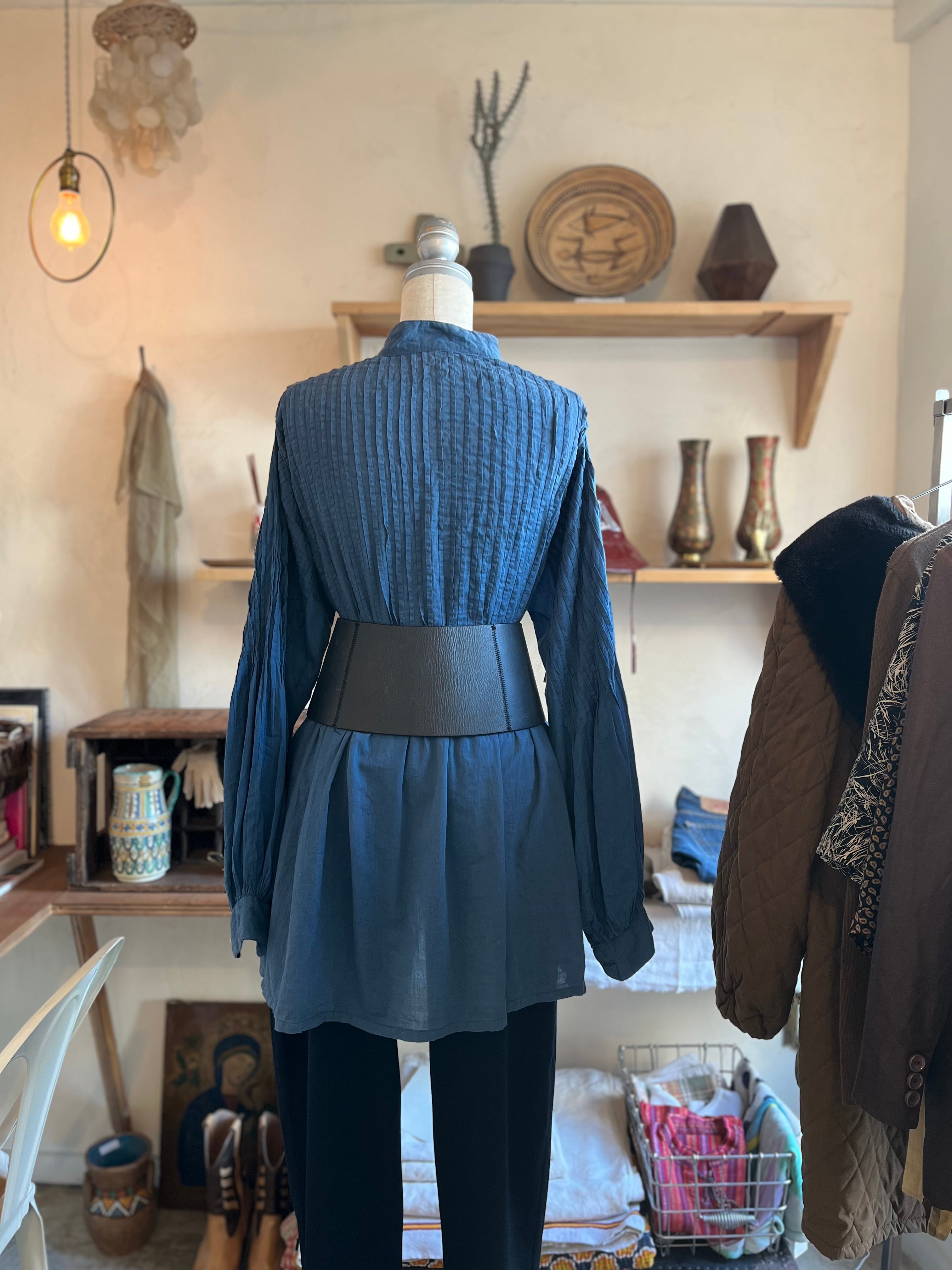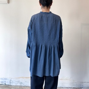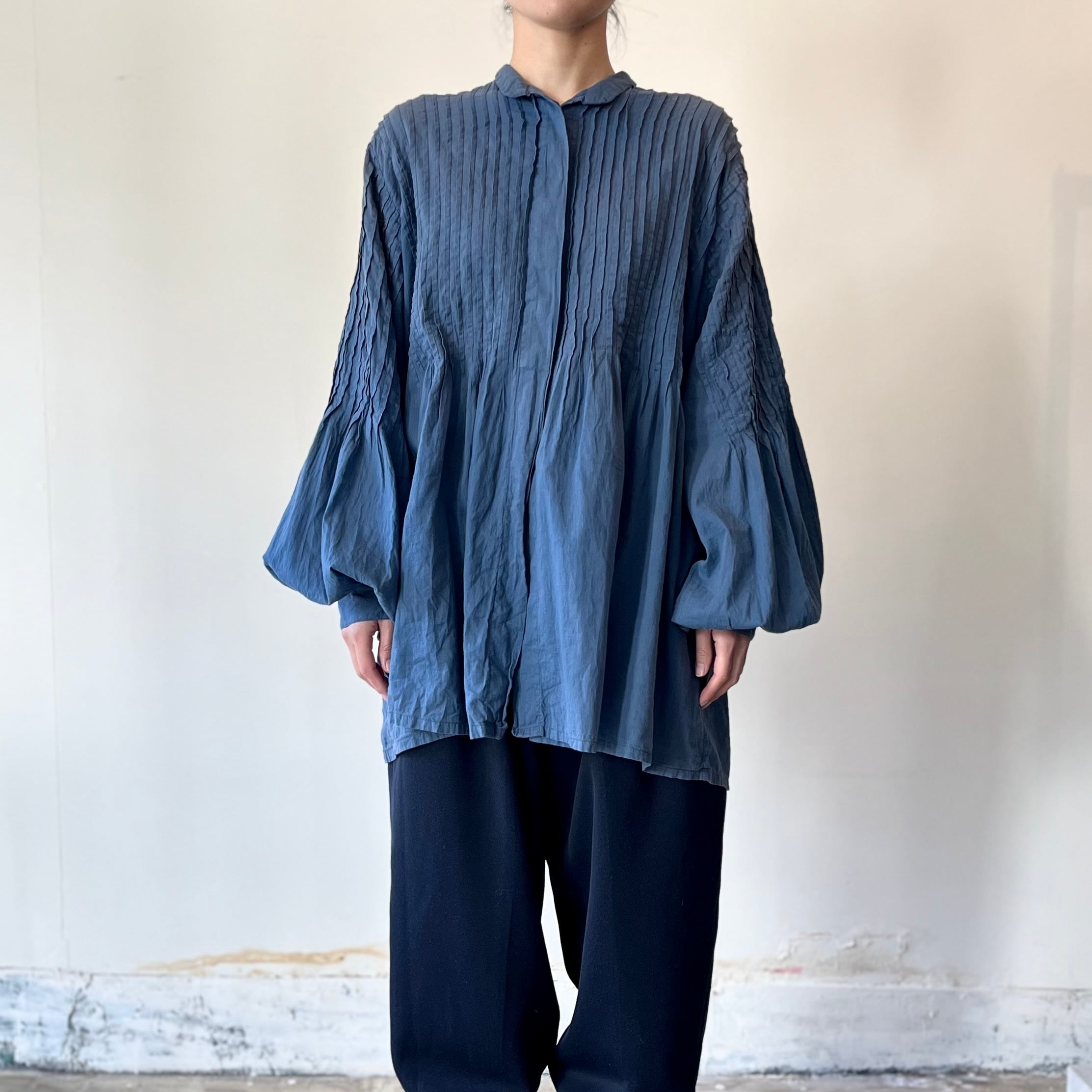 インド綿の軽くて優しい肌触りのビンテージブラウス。見頃だけでなく袖まで贅沢に施されたピンタックが美しく、コンディションも良好です。