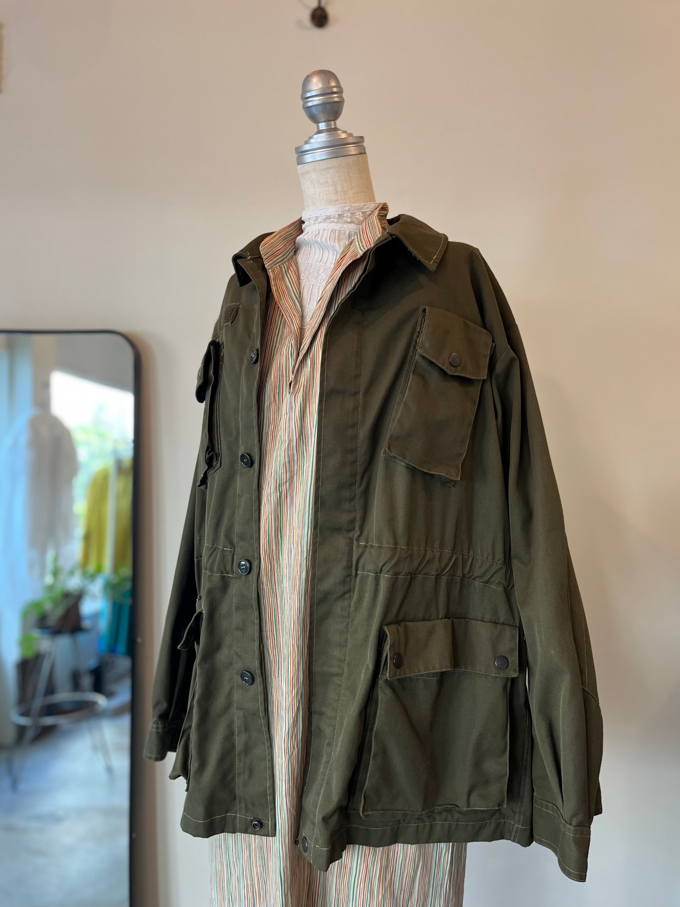 ・ステッチ切れ、糸飛び有り。着用に問題のある地縫いほつれのみ補強済み