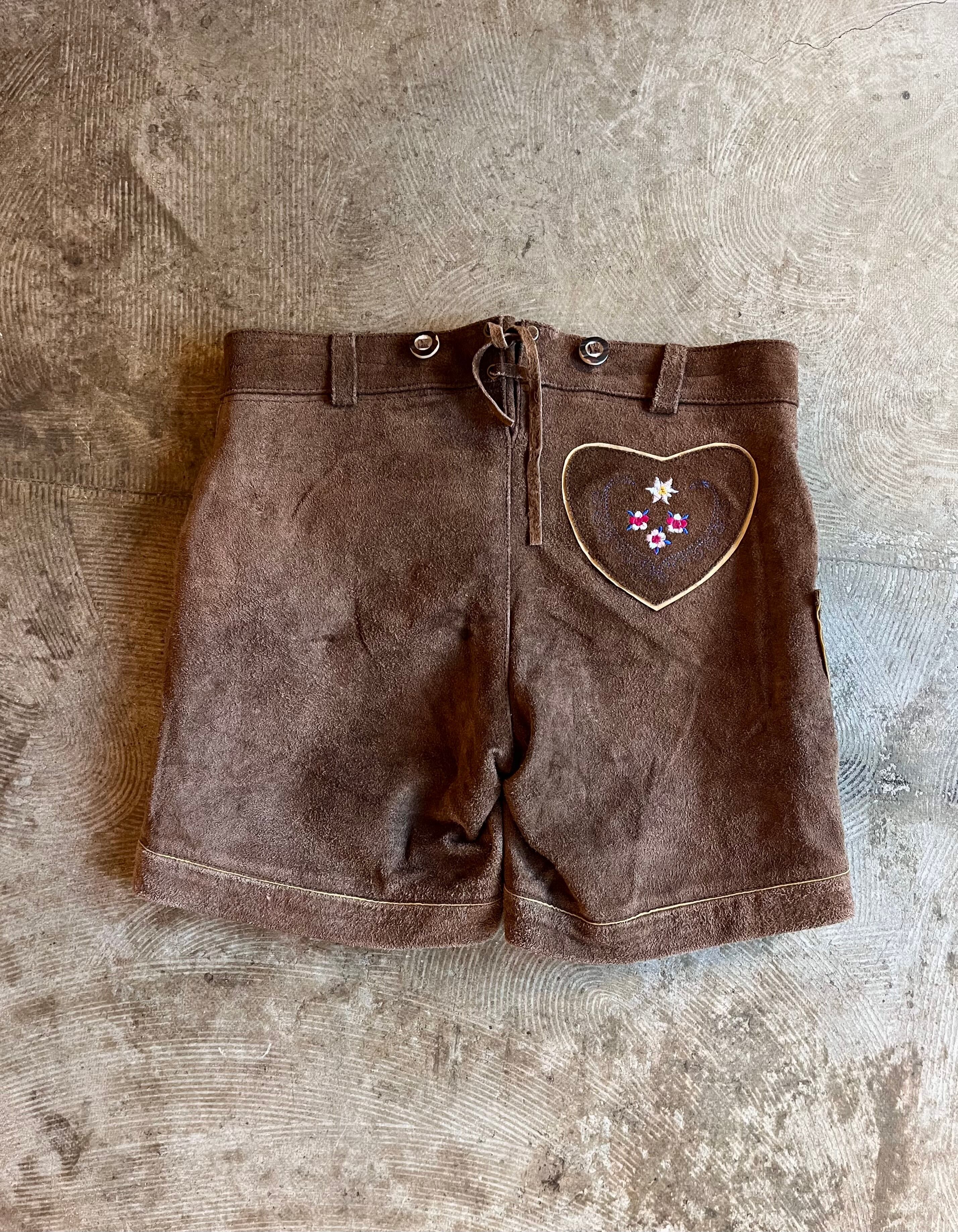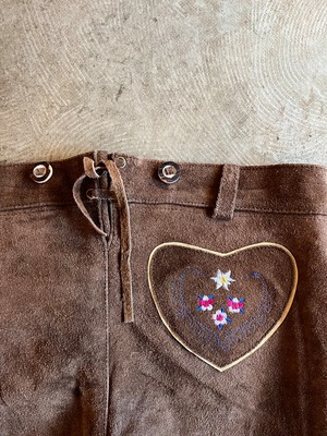 ウエスタンな雰囲気の刺繍が可愛いレザーショートパンツです。後ろのハートはポケットではなく飾りです。